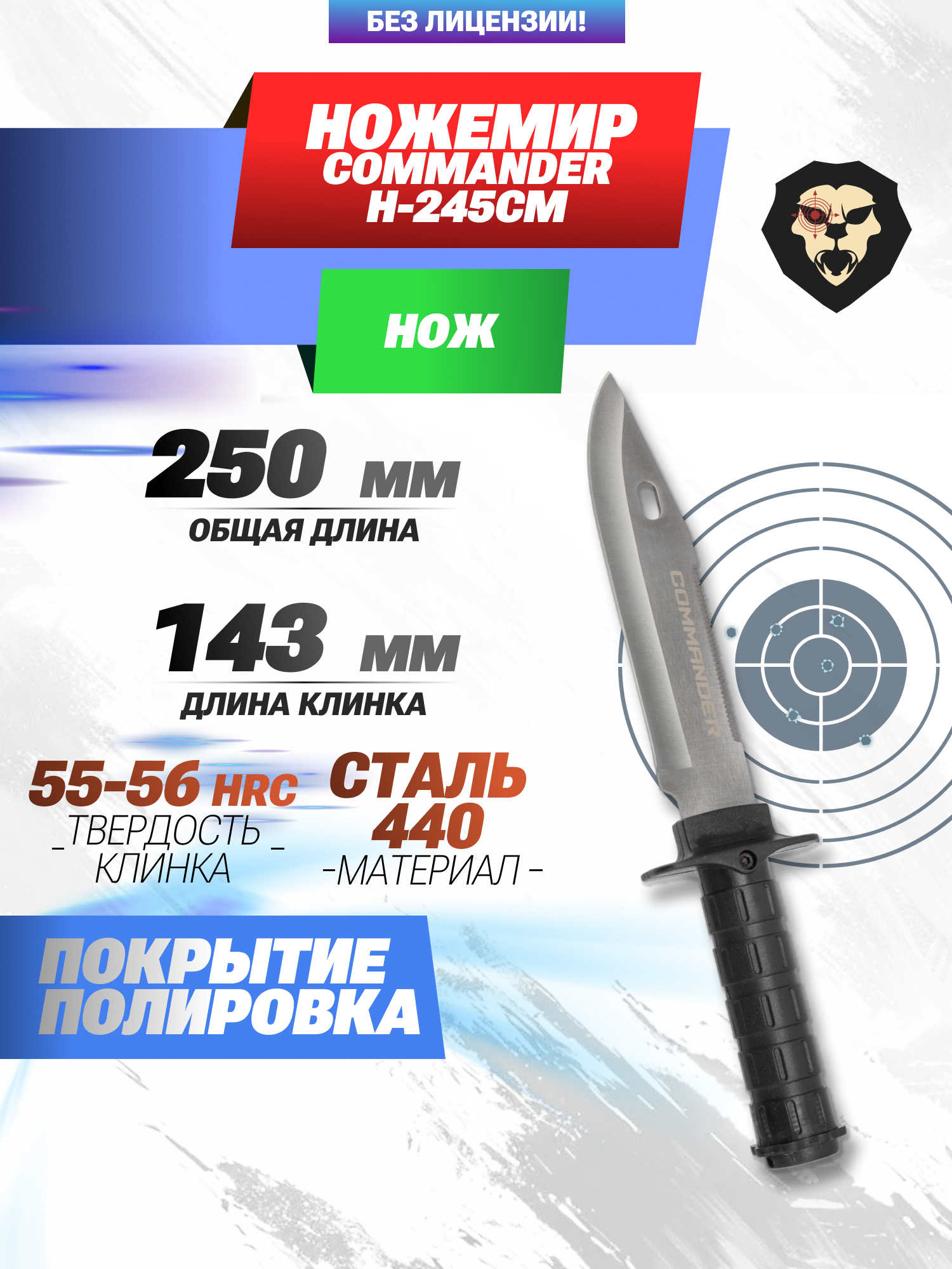 Артикул производителя H-245CM Нож Ножемир Commander H-245CM (комплект НАЗ, сталь 440) по низкой цене 858 руб. Модель со штрихкодом производителя Вы можете оплатить наложенным платежем с доставкой или в отделении транспортной компании (ПЭК, СДЭК, Boxberry). Ваш заказ со штрихкодом 2000000146003 забрать на почте с оплатой при получении в любой части Российской Федерации.