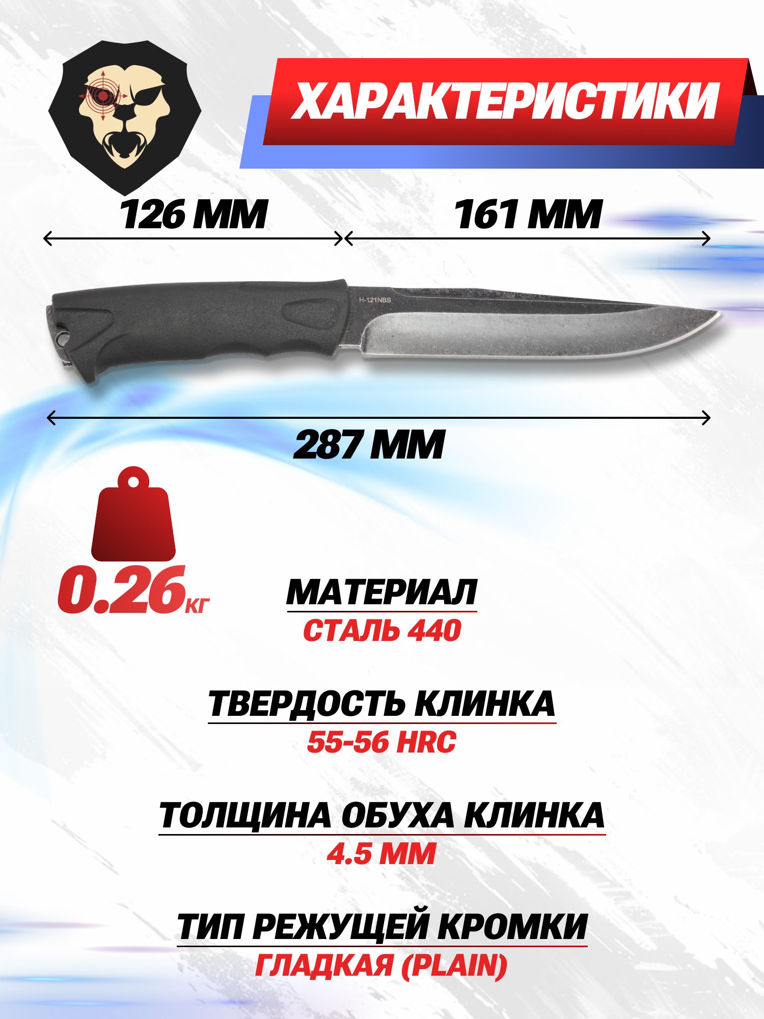 | Комплектация | Нож, чехол, упаковка |