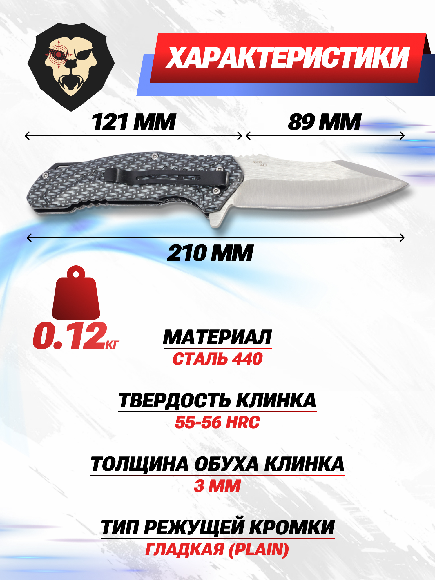 Ножемир складные ножи Четкий Расклад создаются из качественной нержавеющей стали. Рассматриваемый фолдер не стал исключением - при ковке 89 мм клинка используется 440-я марка, твердость которой после закалки лежит в пределах 55-56 HRC согласно шкале Роквелла. Из-за противокоррозионных свойств металла образцу не потребуется специальный уход, при этом гладкая режущая кромка хорошо сохраняет остроту даже при интенсивной работе.