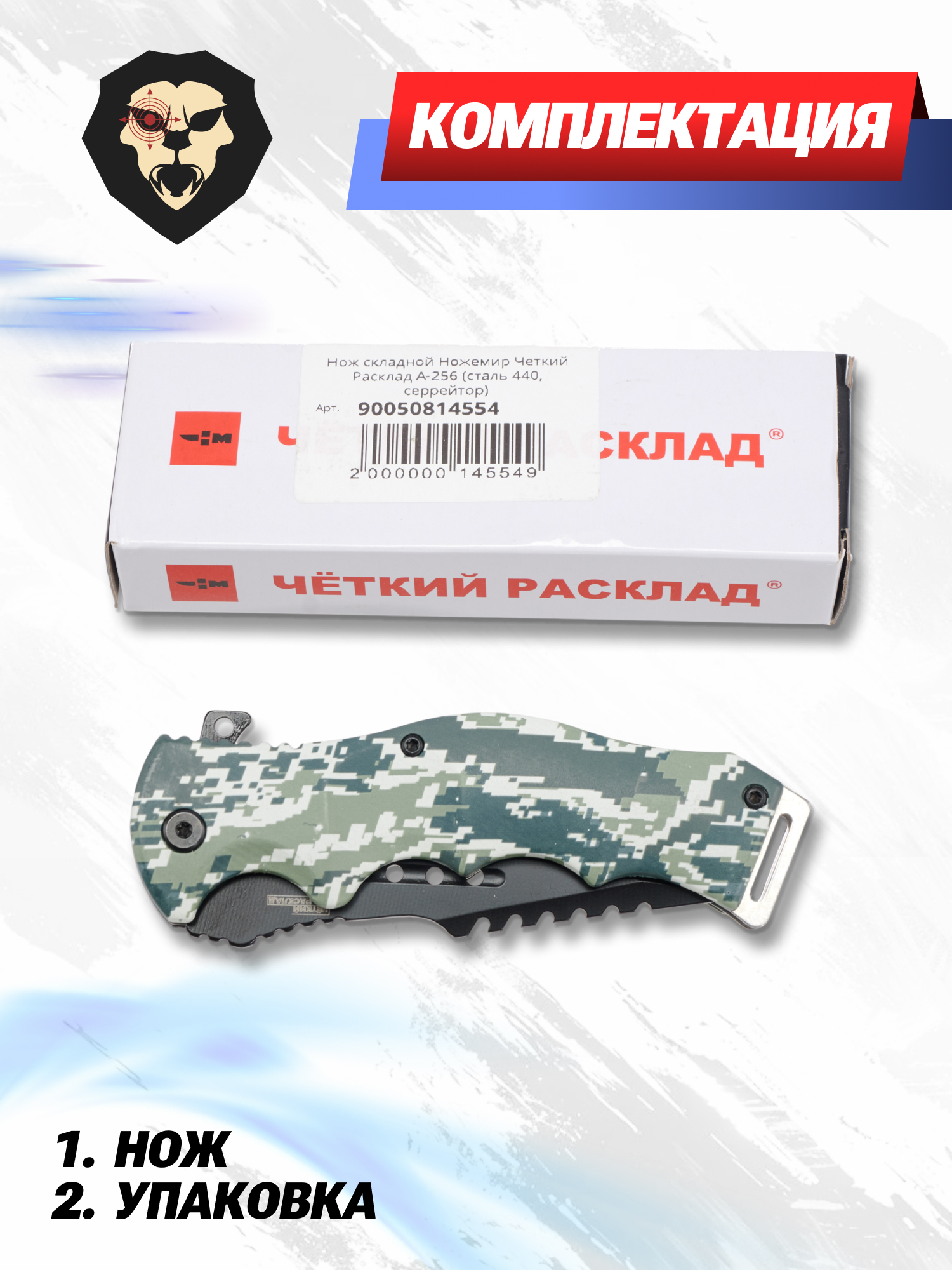 Артикул производителя A-256 Нож складной Ножемир Четкий Расклад A-256 (сталь 440, серрейтор) по низкой цене 927 руб. Модель со штрихкодом производителя Вы можете оплатить наложенным платежем с доставкой или в отделении транспортной компании (ПЭК, СДЭК, Boxberry). Ваш заказ со штрихкодом 2000000145549 забрать на почте с оплатой при получении в любой части Российской Федерации.