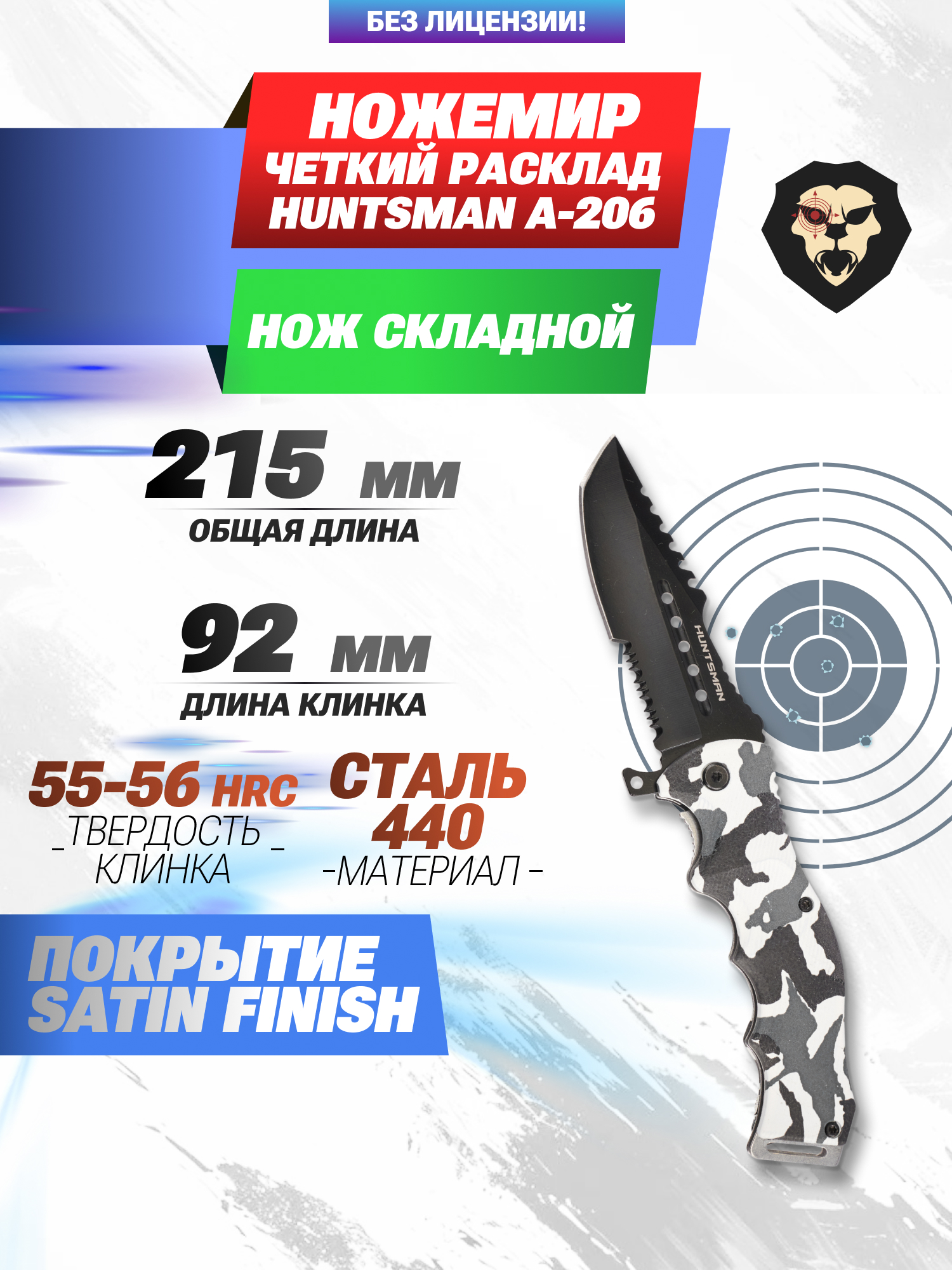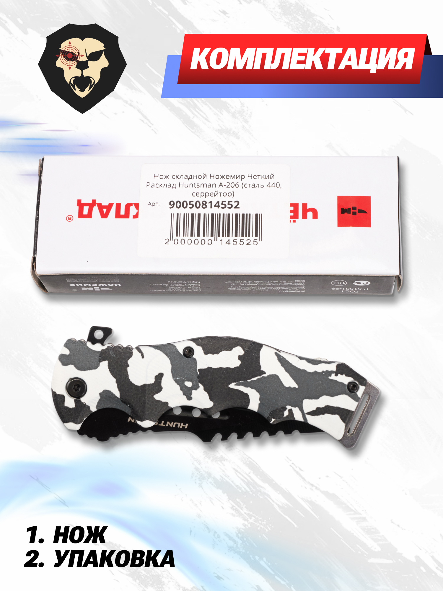 Артикул производителя A-206 Нож складной Ножемир Четкий Расклад Huntsman A-206 (сталь 440, серрейтор) по низкой цене 927 руб. Модель со штрихкодом производителя Вы можете оплатить наложенным платежем с доставкой или в отделении транспортной компании (ПЭК, СДЭК, Boxberry). Ваш заказ со штрихкодом 2000000145525 забрать на почте с оплатой при получении в любой части Российской Федерации.