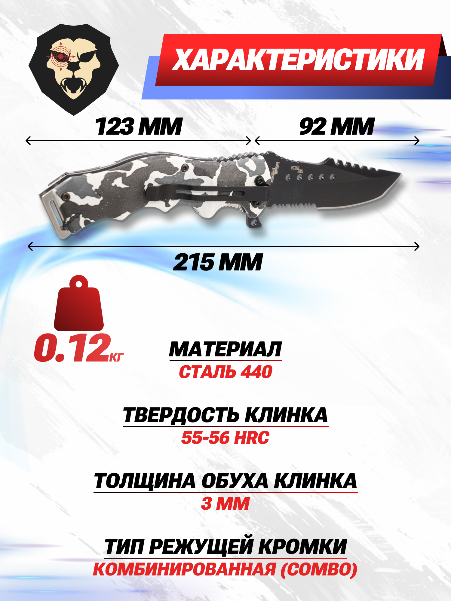 | Цвет рукояти | Камуфляж |