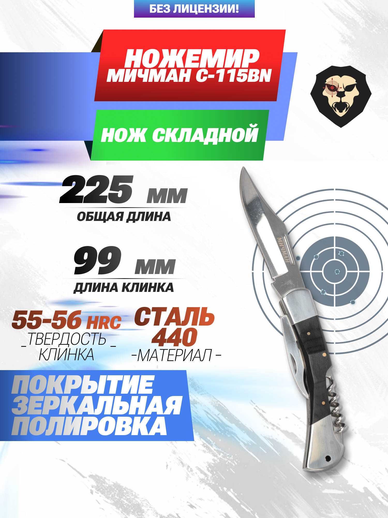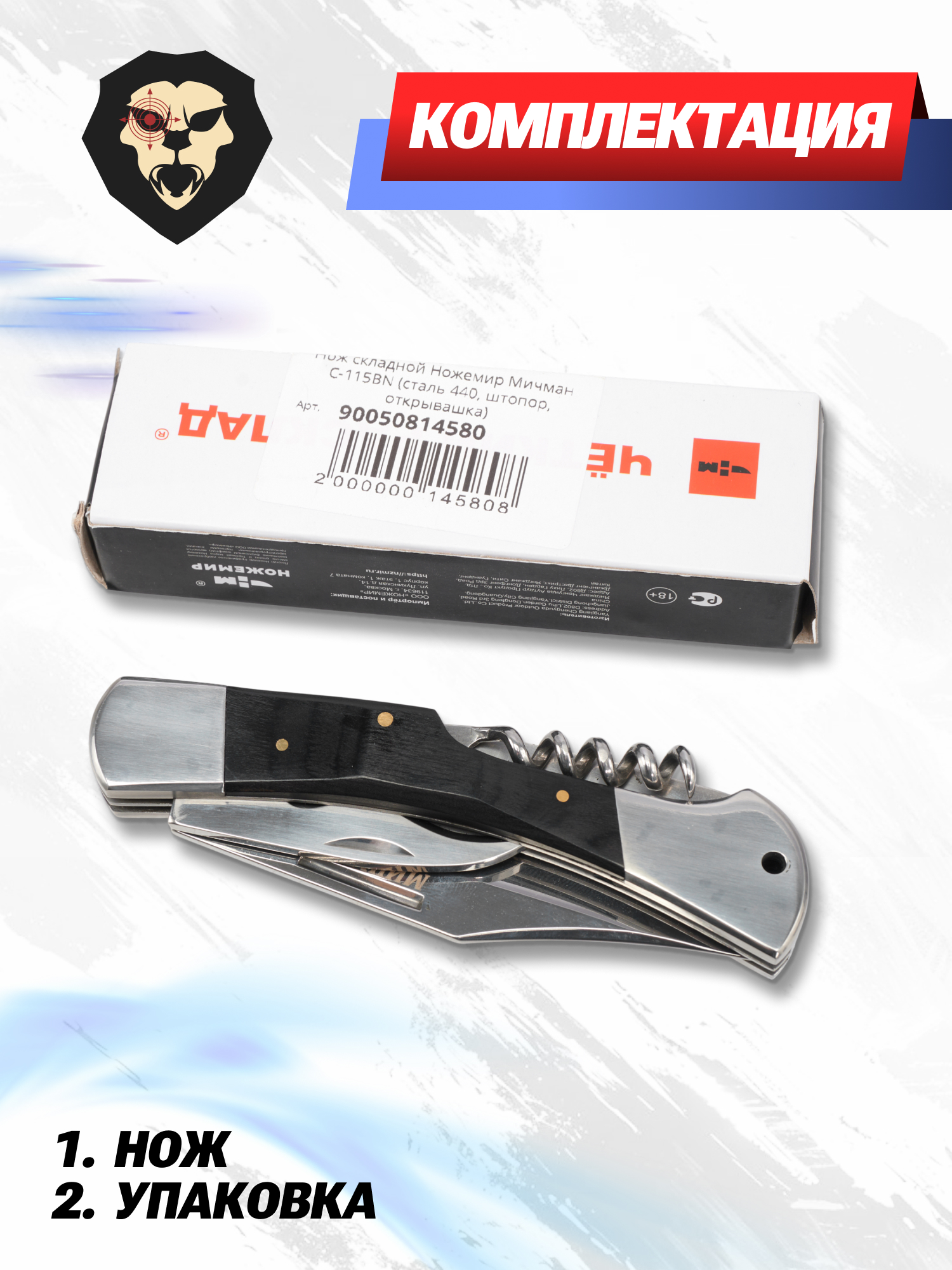 Нож складной Ножемир Мичман C-115BN (сталь 440, штопор, открывашка) купить в интернет-магазине Popadiv10.