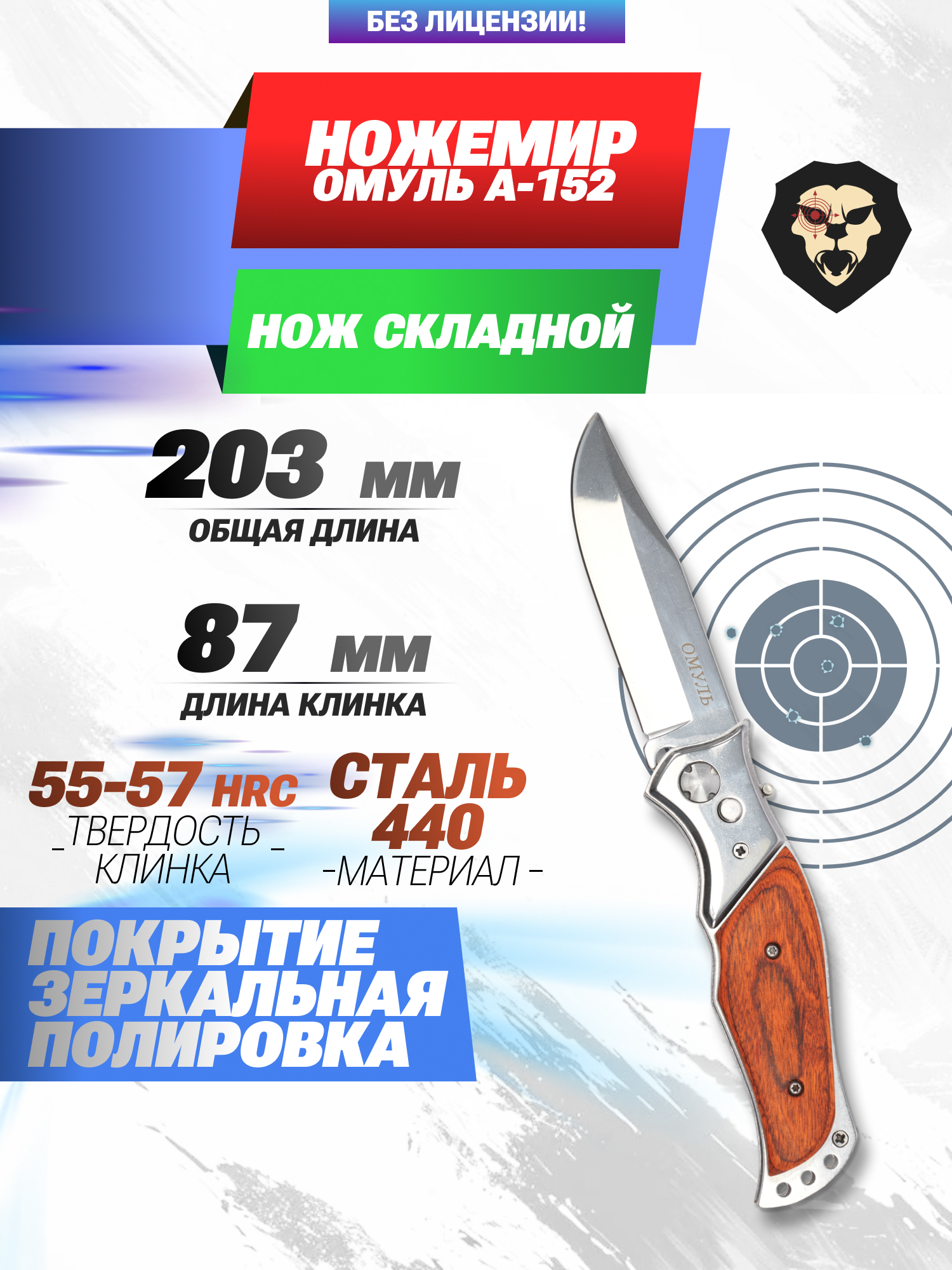 Информация о товаре "Нож складной Ножемир Омуль A-152 (сталь 440, дерево)" носит ознакомительный характер, и не является публичной офертой, определяемой положениями Статьи 437 Гражданского кодекса Российской Федерации, характеристики, внешний вид, цвет и комплектация могут быть изменены производителем без уведомления.