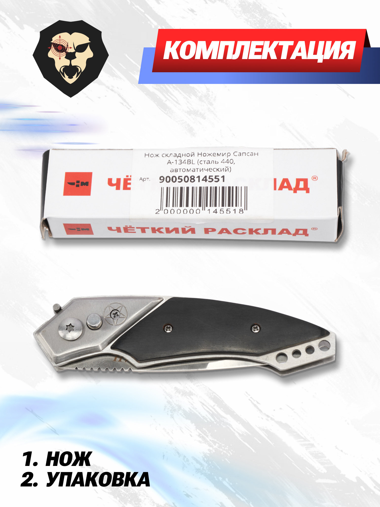 Артикул производителя A-134BL Нож складной Ножемир Сапсан A-134BL (сталь 440, автоматический) по низкой цене 925 руб. Модель со штрихкодом производителя Вы можете оплатить наложенным платежем с доставкой или в отделении транспортной компании (ПЭК, СДЭК, Boxberry). Ваш заказ со штрихкодом 2000000145518 забрать на почте с оплатой при получении в любой части Российской Федерации.