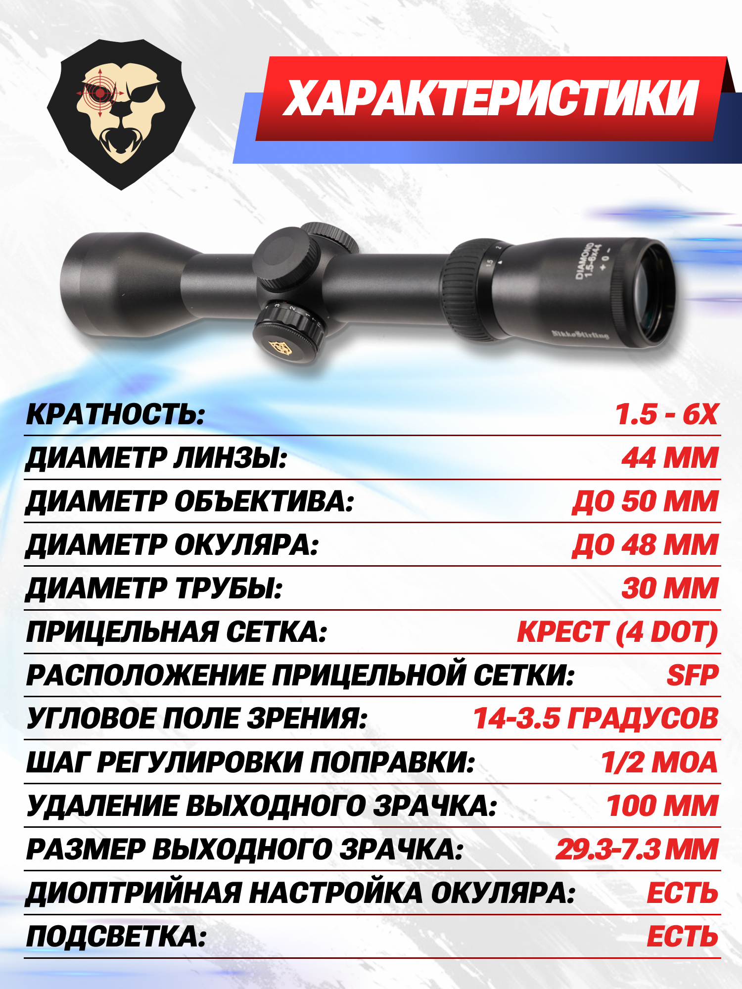 Оптический прицел Nikko Stirling Diamond 1.5-6x44 (No 4 dot, подсветка, 30 мм) купить в интернет-магазине Popadiv10.