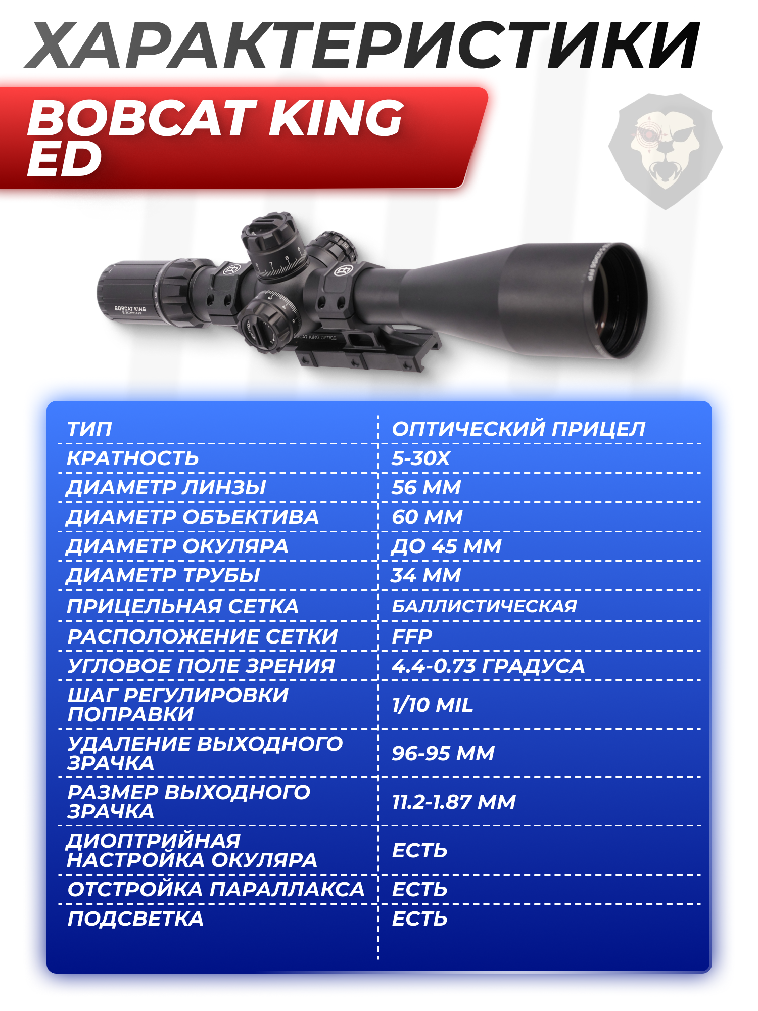 Оптический прицел Bobcat King ED 5-30x56 SFIR FFP (34 мм, подсветка, Zero Stop) купить в интернет-магазине Popadiv10.