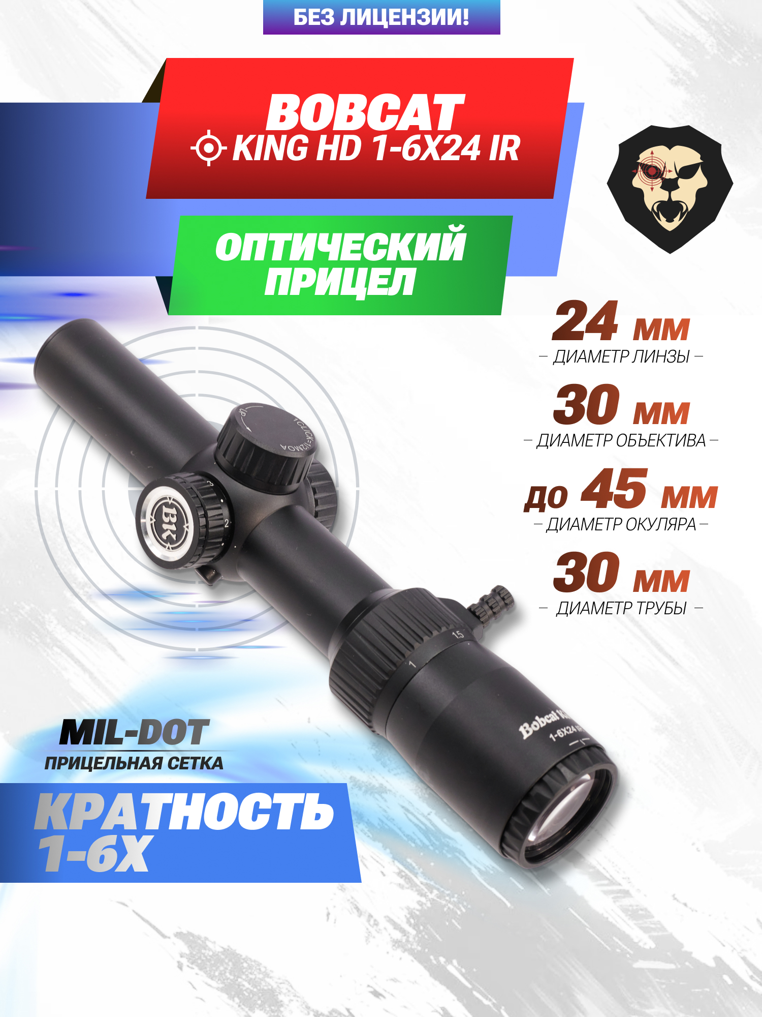 Оптический прицел Bobcat King HD 1-6x24 IR (30 мм, подсветка, Mil-Dot) купить в интернет-магазине Popadiv10.