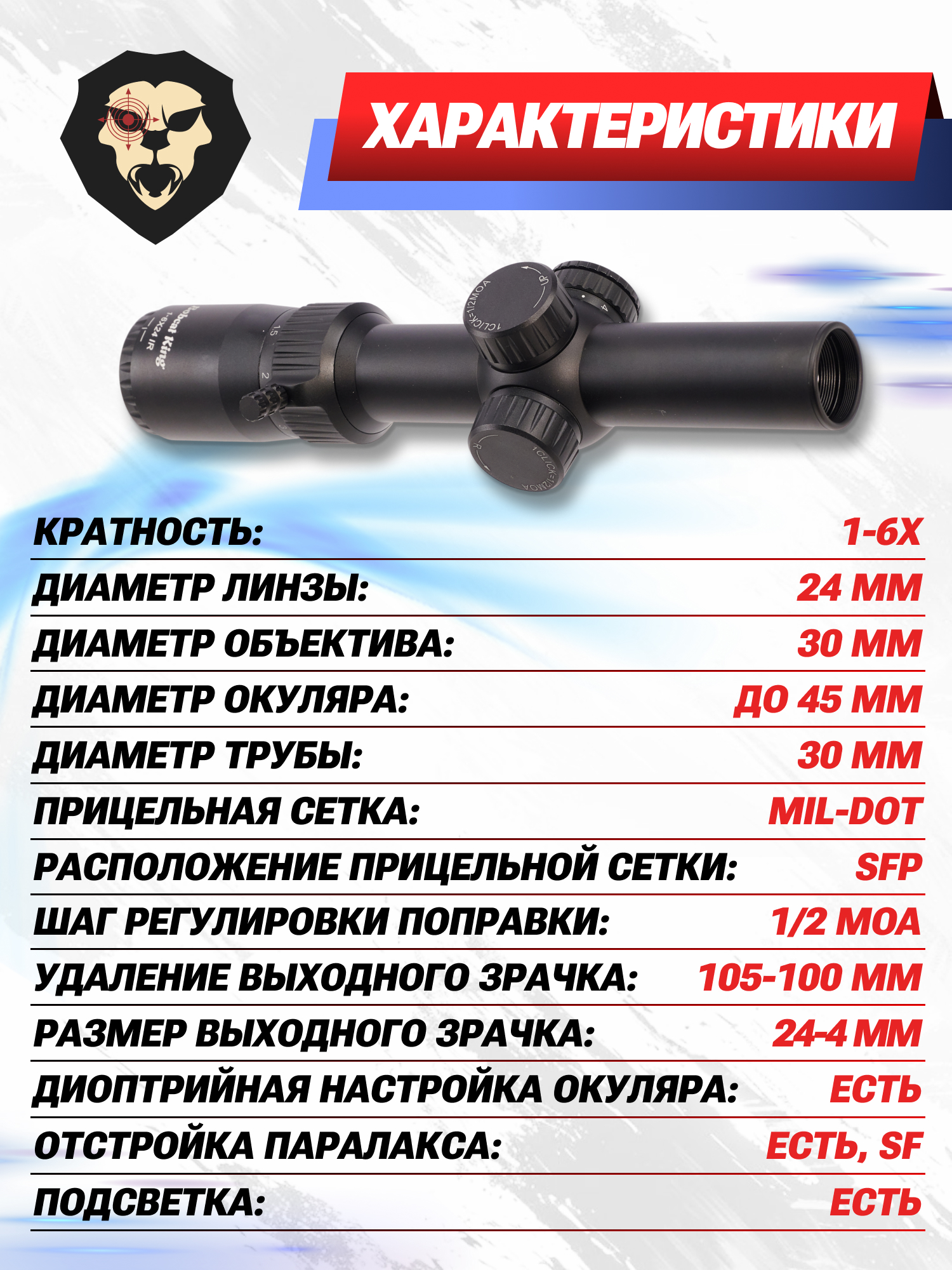Артикул производителя SM-1216-A Оптический прицел Bobcat King HD 1-6x24 IR (30 мм, подсветка, Mil-Dot) по низкой цене 10990 руб. Модель со штрихкодом производителя Вы можете оплатить наложенным платежем с доставкой или в отделении транспортной компании (ПЭК, СДЭК, Boxberry). Ваш заказ со штрихкодом 2000000131030 забрать на почте с оплатой при получении в любой части Российской Федерации.