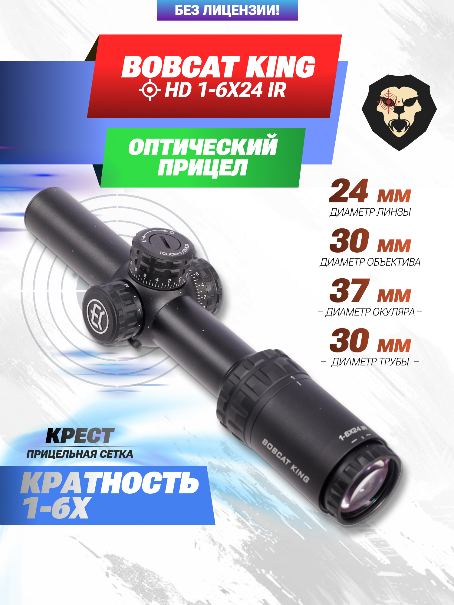 Оптический прицел Bobcat King HD 1-6x24 IR (30 мм, подсветка, Крест) купить в интернет-магазине Popadiv10.