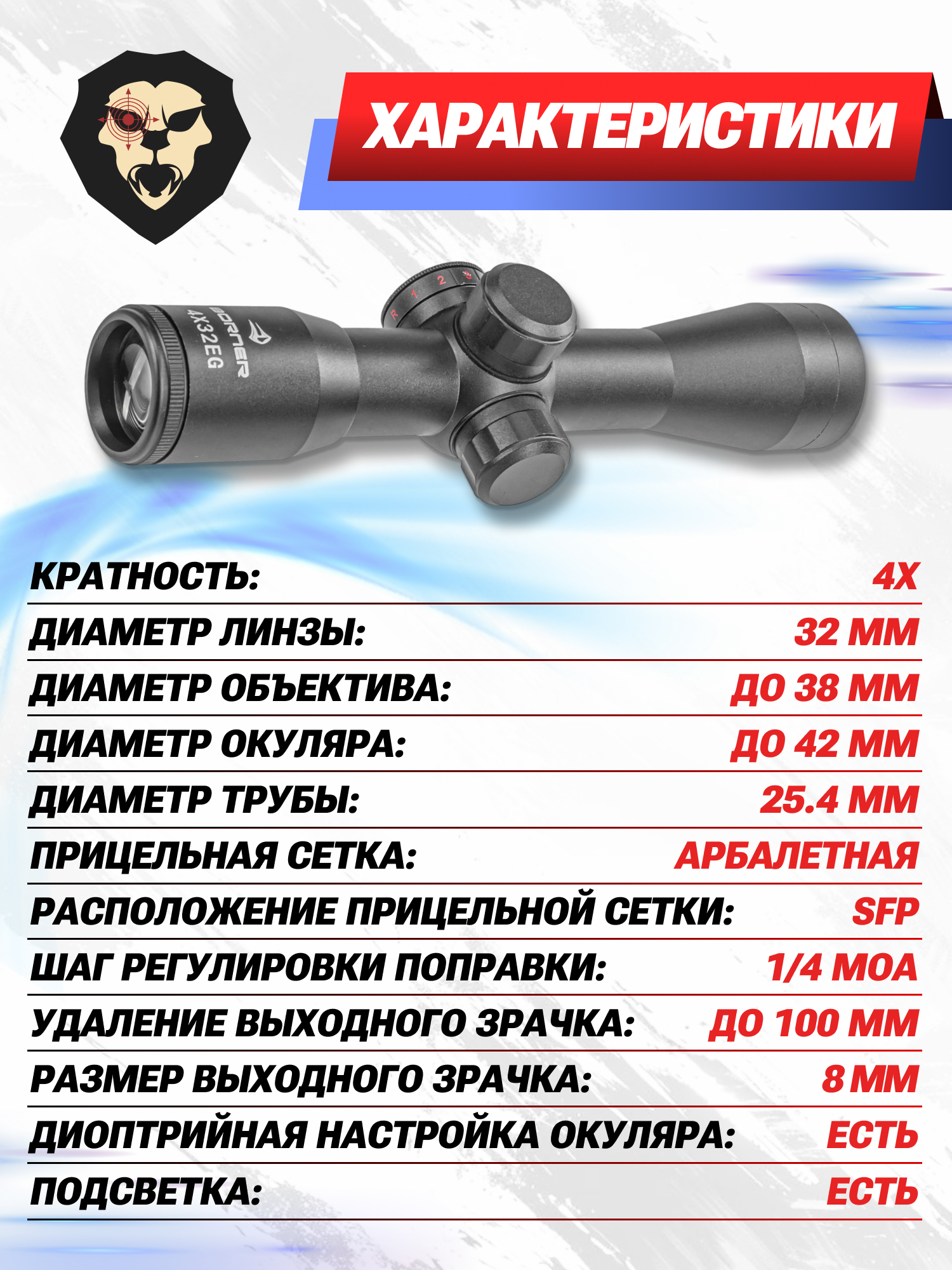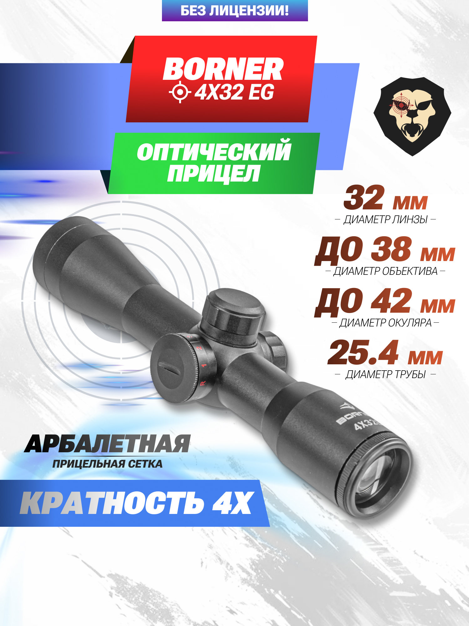 Оптический прицел Borner 4x32 EG (Weaver, для арбалета, подсветка, 25.4 мм) купить в интернет-магазине Popadiv10.