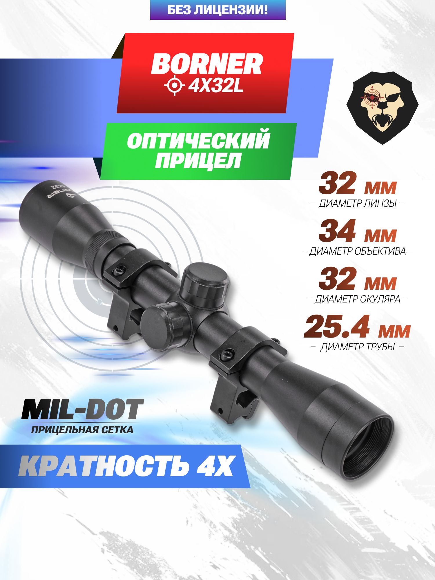 Оптический прицел Borner 4x32L купить в интернет-магазине Popadiv10.