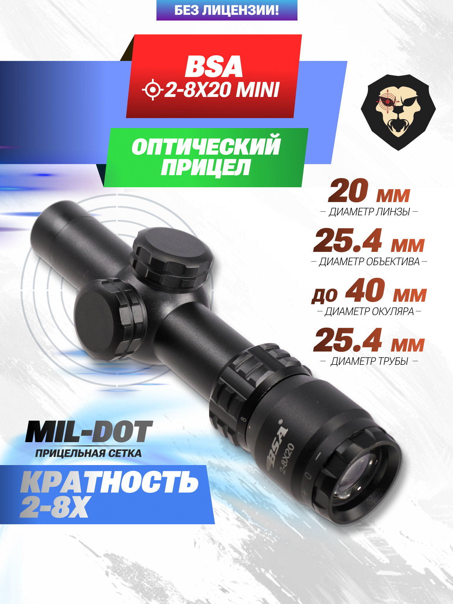 Информация о товаре "Оптический прицел BSA 2-8x20 Mini (BH-BS282, 25.4 мм, Mil-Dot)" носит ознакомительный характер, и не является публичной офертой, определяемой положениями Статьи 437 Гражданского кодекса Российской Федерации, характеристики, внешний вид, цвет и комплектация могут быть изменены производителем без уведомления.