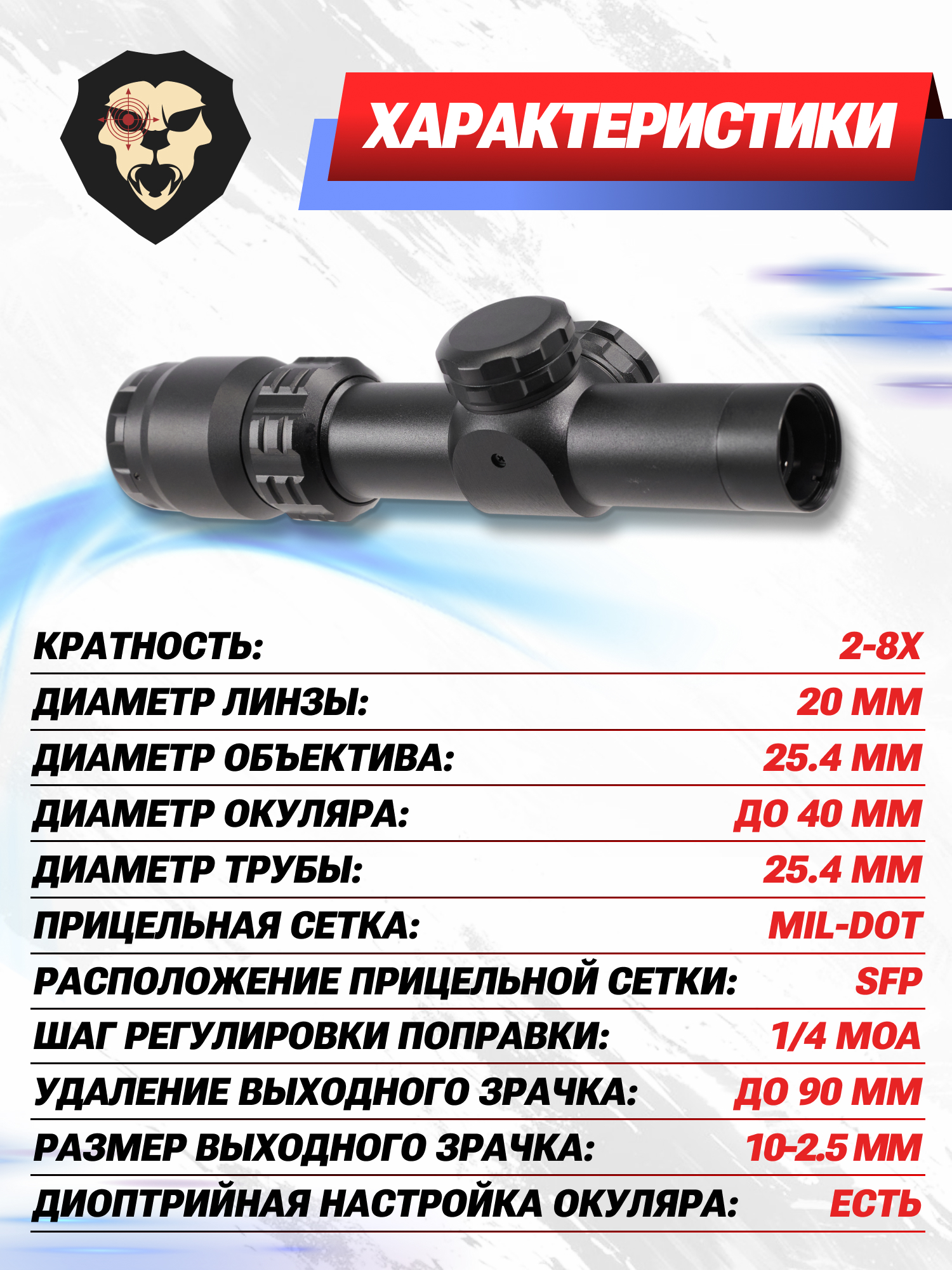 | Диаметр трубы прицела | 25.4 мм |