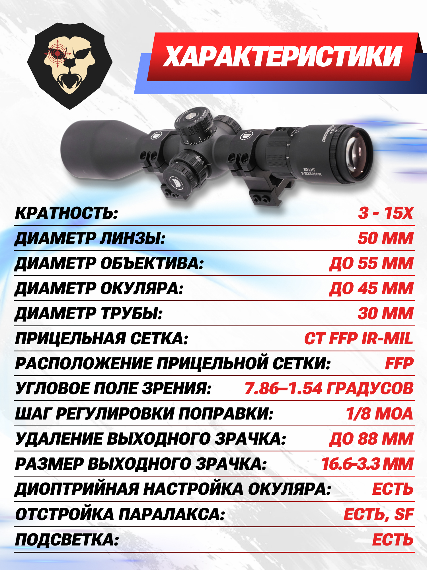Оптический прицел Discovery ED-LHT 3-15x50SFIR (30 мм, оригинал) купить в интернет-магазине Popadiv10.