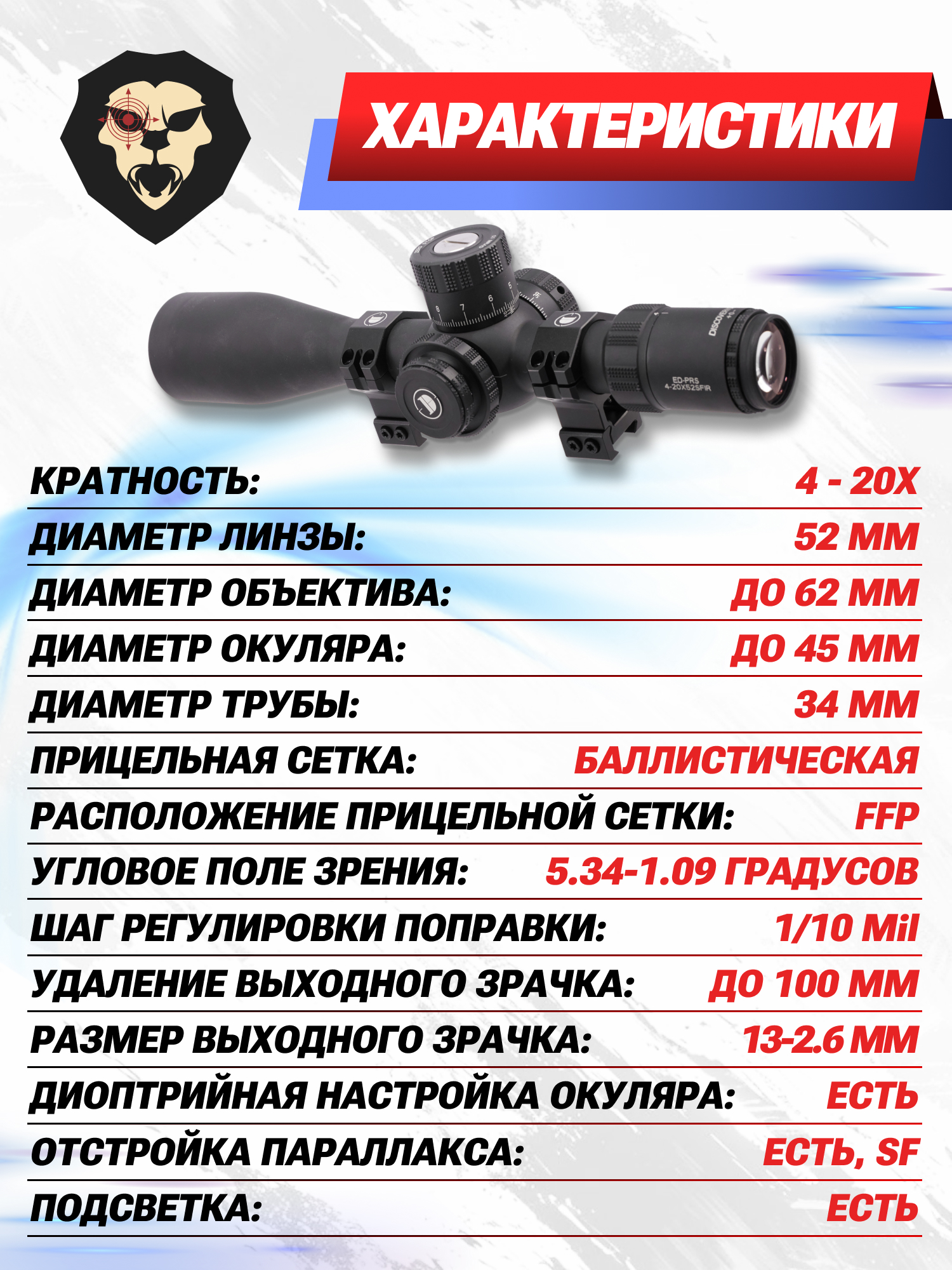 Оптический прицел Discovery ED-PRS 4-20x52SFIR (34 мм, оригинал) купить в интернет-магазине Popadiv10.