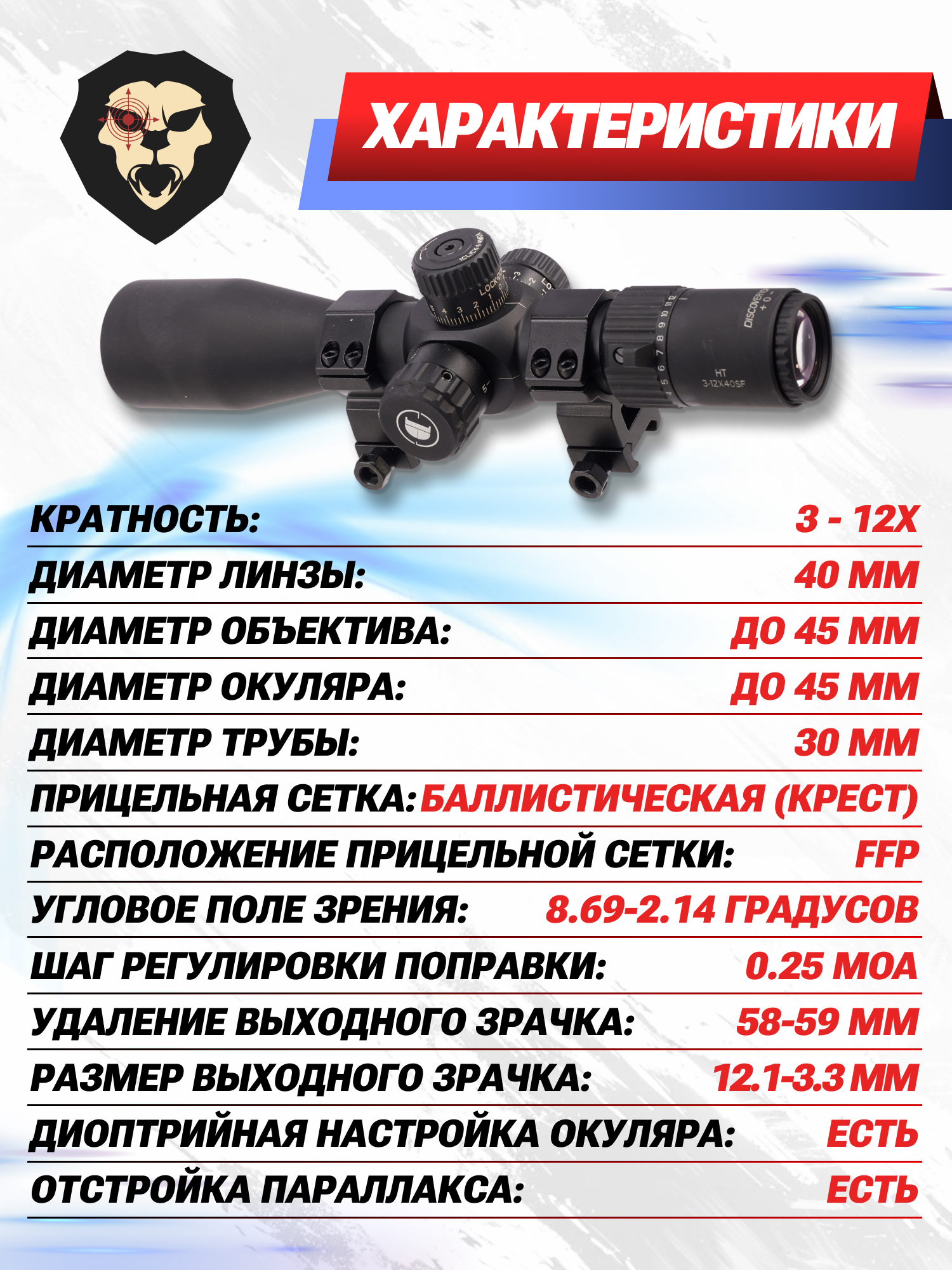 Оптический прицел Discovery HT 3-12x40SF (30 мм, оригинал, FFP) купить в интернет-магазине Popadiv10.