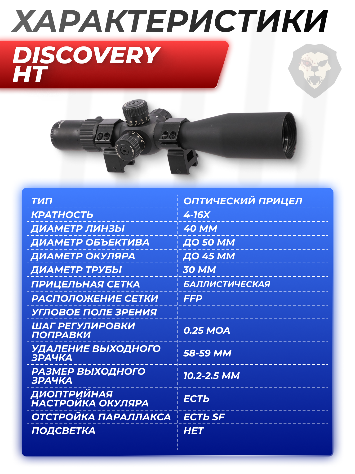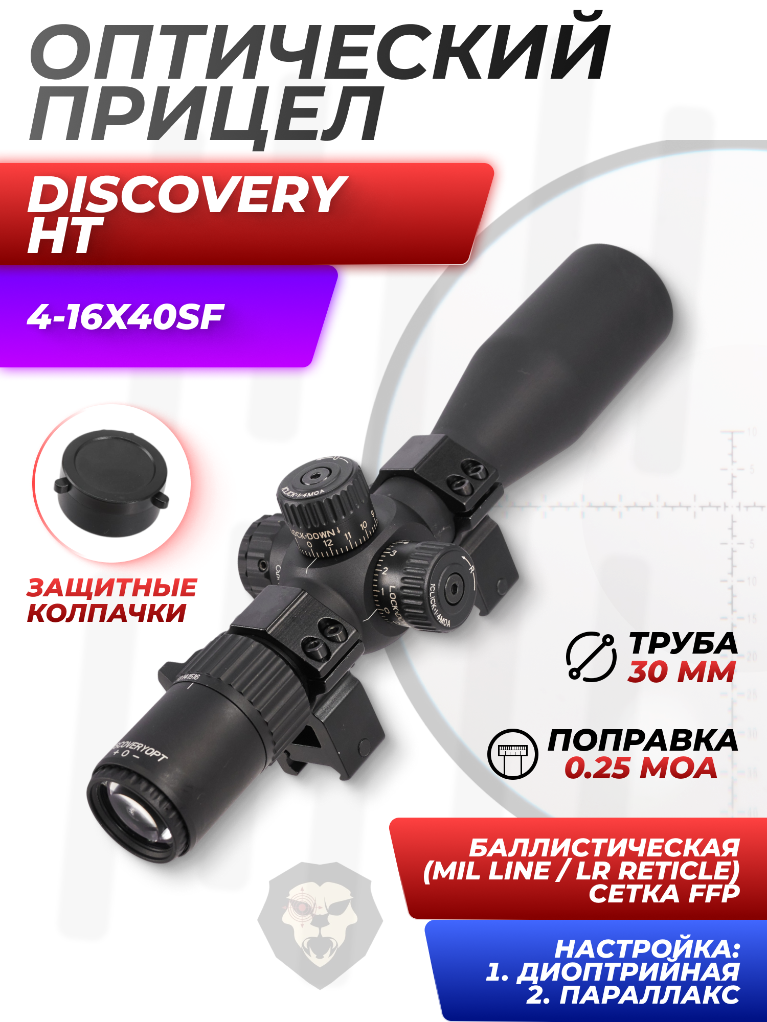 Оптический прицел Discovery HT 4-16x40SF (30 мм, оригинал, FFP) купить в интернет-магазине Popadiv10.