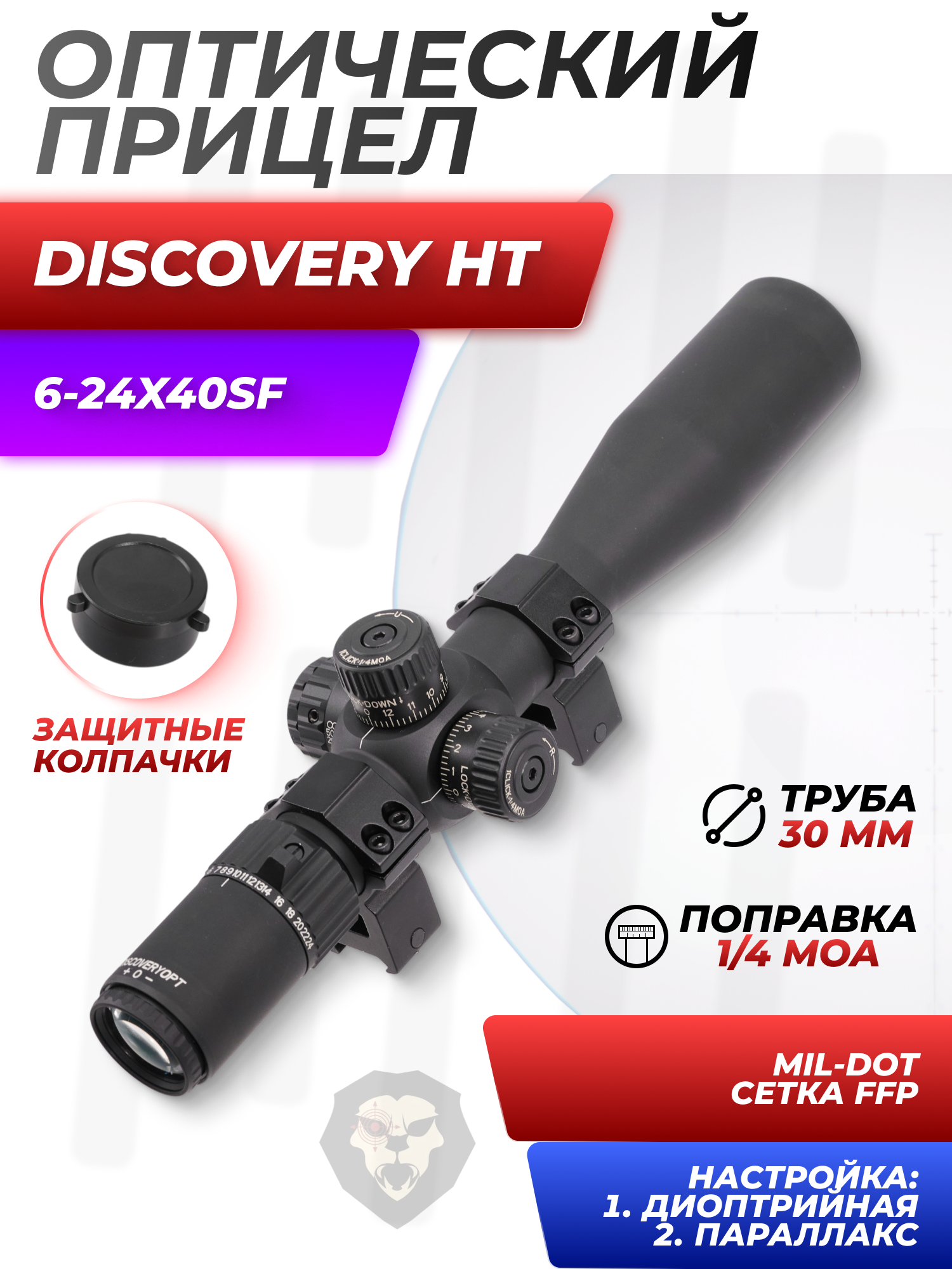 Оптический прицел Discovery HT 6-24x40SF (30 мм, оригинал, FFP) купить в интернет-магазине Popadiv10.