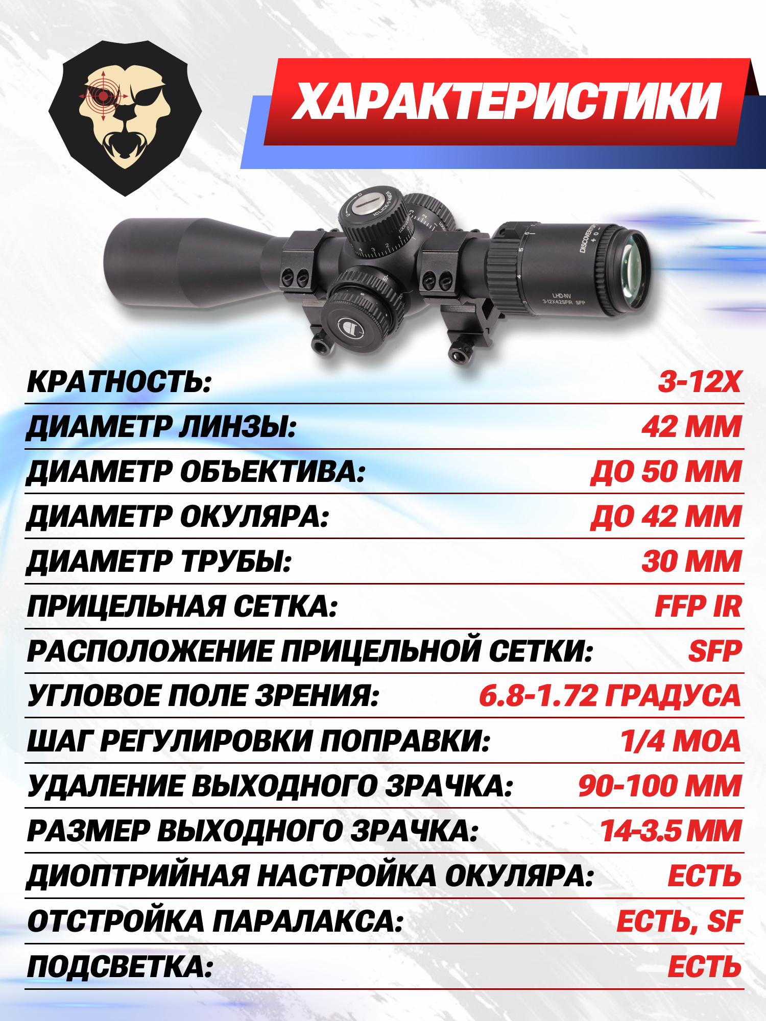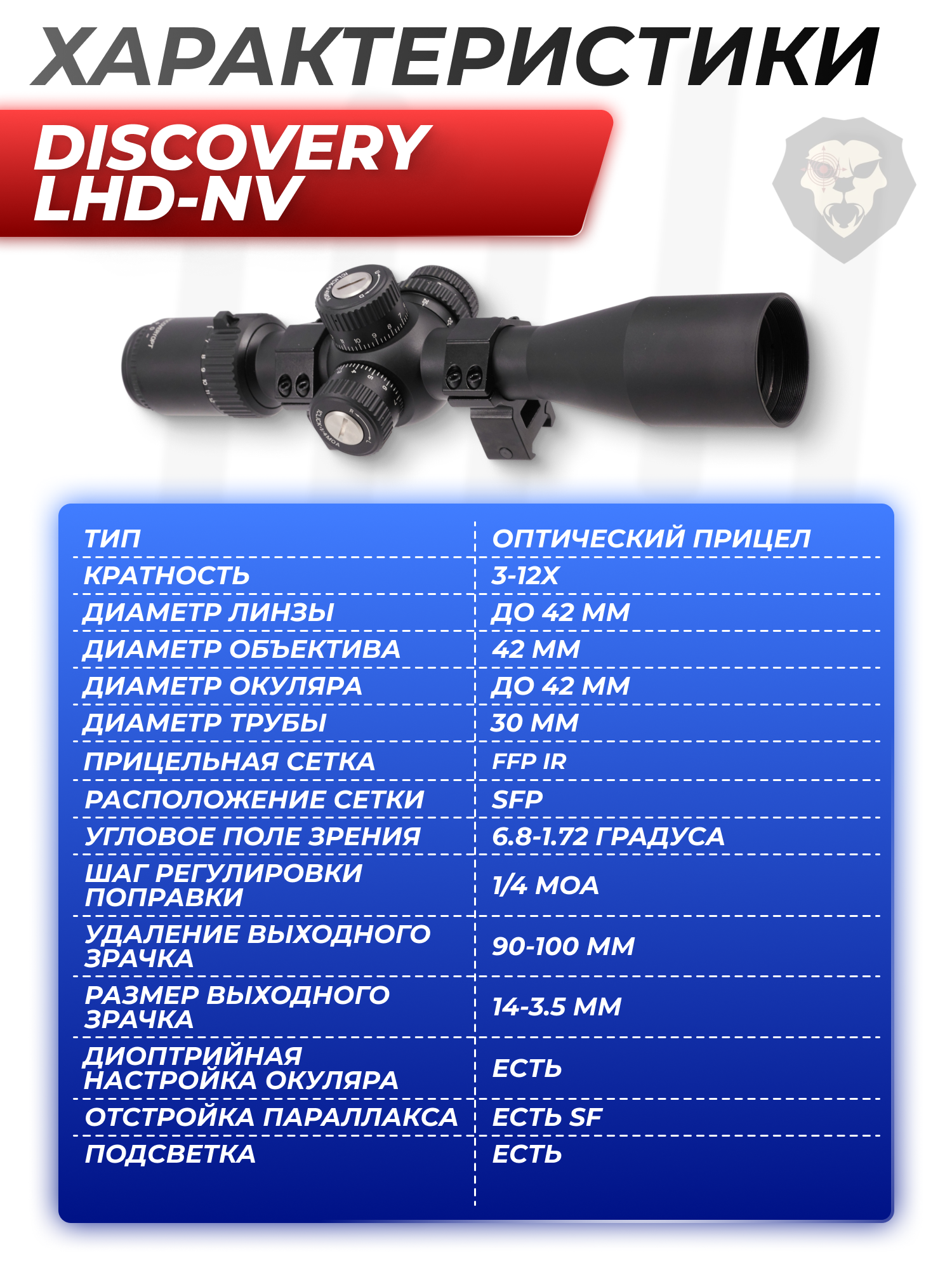 Оптический прицел Discovery LHD-NV 3-12х42SFIR (30 мм, оригинал) купить в интернет-магазине Popadiv10.