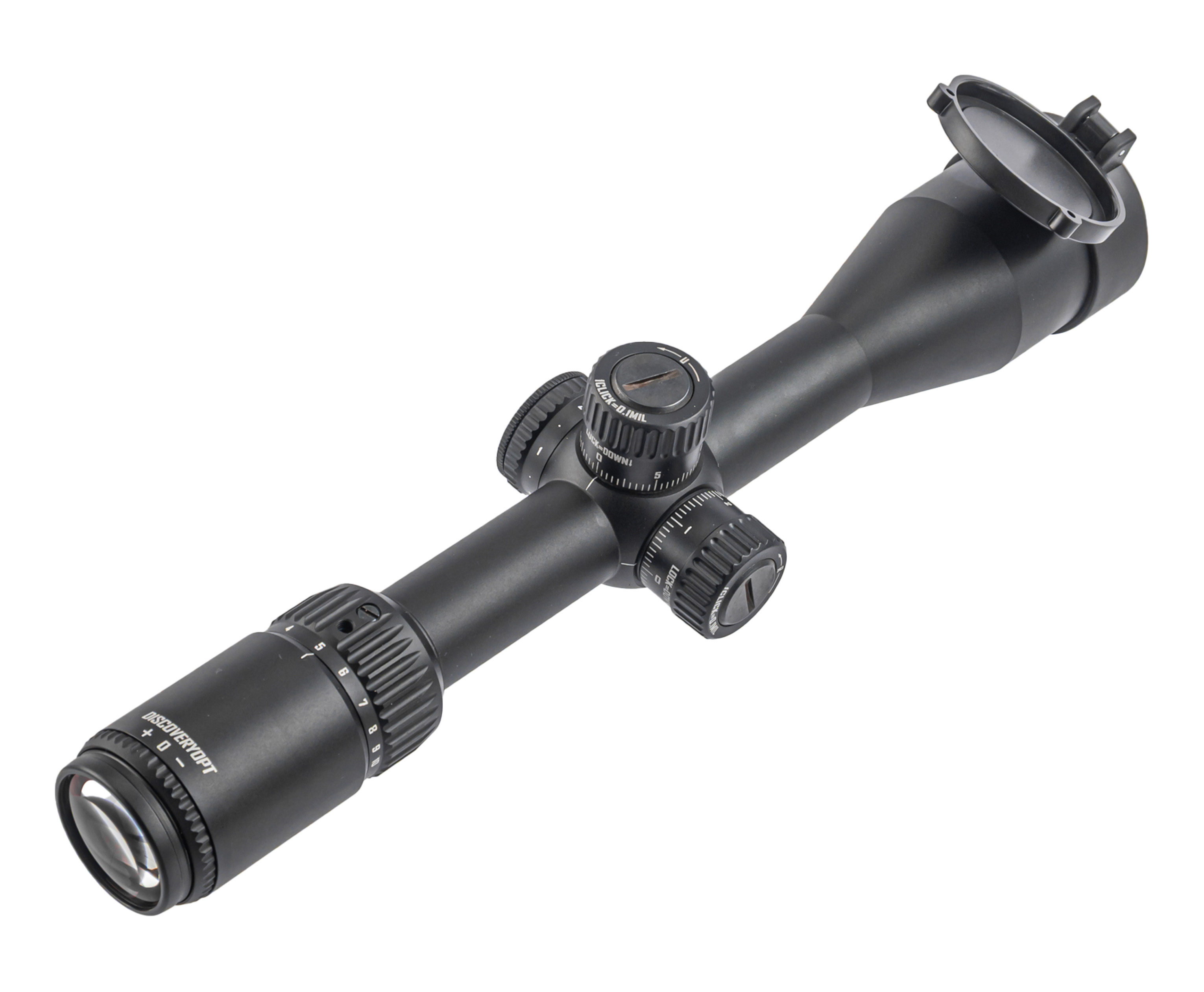 Перекрестие нанесено непосредственно на линзу, находящуюся во второй фокальной плоскости SFP, и благодаря тонким линиям не перекрывает обзор. Сверху и слева на юстировочном узле есть турели для внесения вертикальных и горизонтальных поправок - шаг корректировки составляет 0.1 MIL. От случайного поворота предусмотрена блокировка типа Lock-Down.