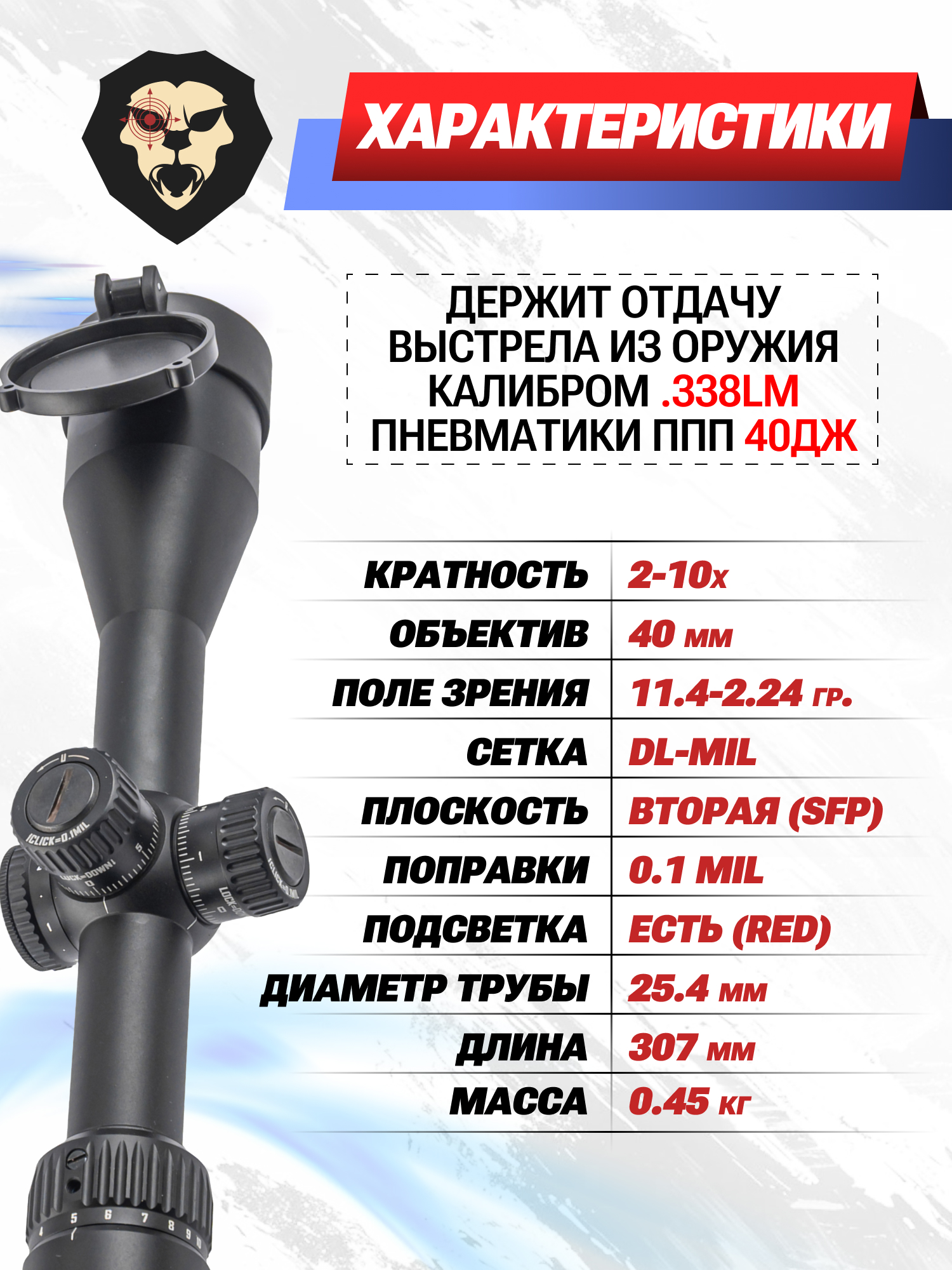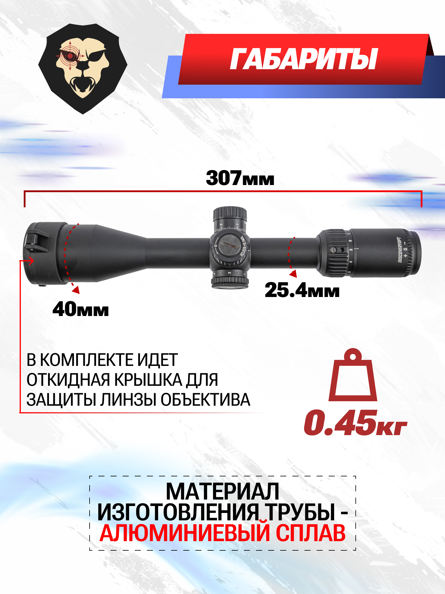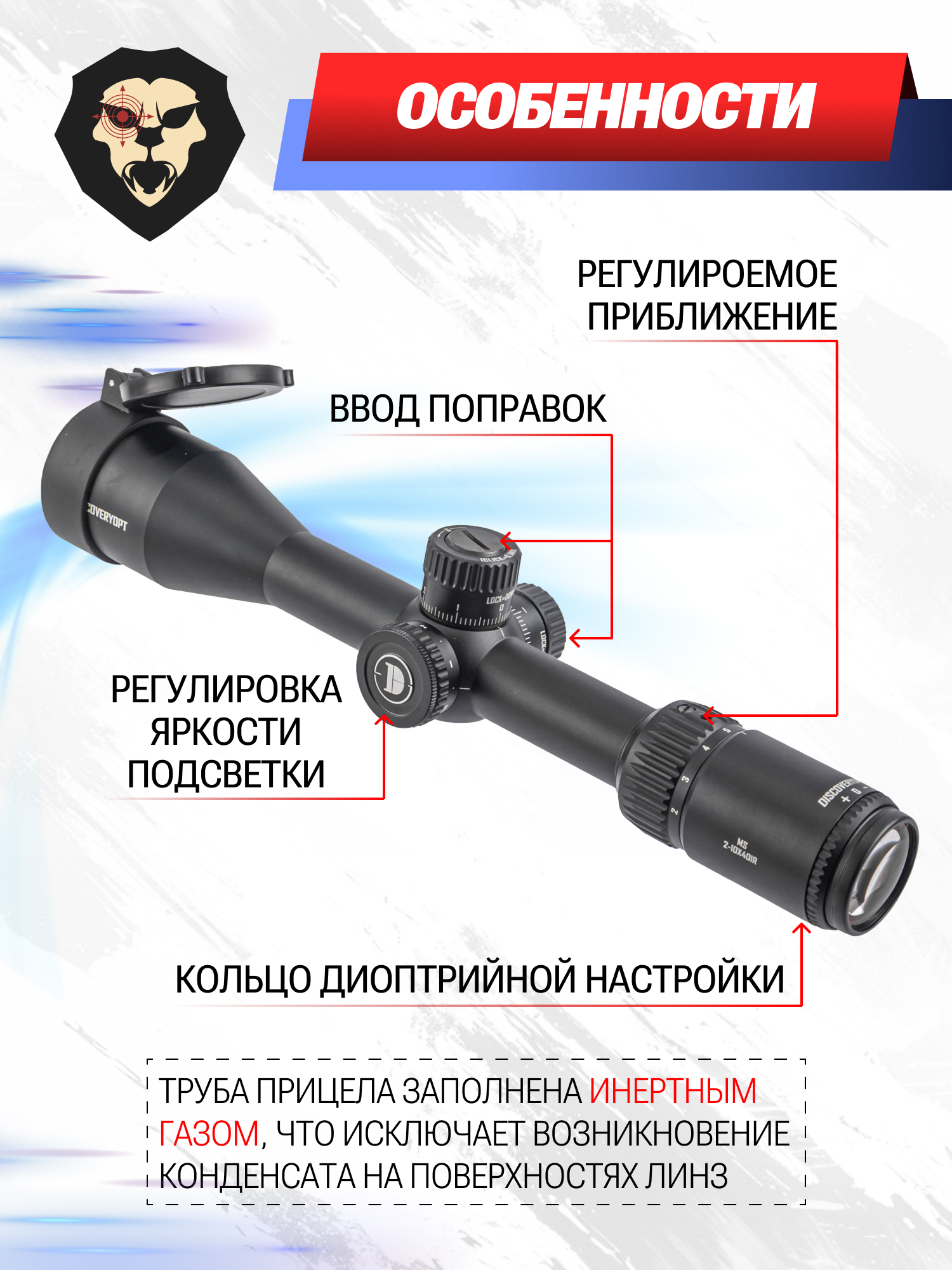 Информация о товаре "Оптический прицел Discovery MS 2-10x40IR (Вивер, 25.4 мм)" носит ознакомительный характер, и не является публичной офертой, определяемой положениями Статьи 437 Гражданского кодекса Российской Федерации, характеристики, внешний вид, цвет и комплектация могут быть изменены производителем без уведомления.