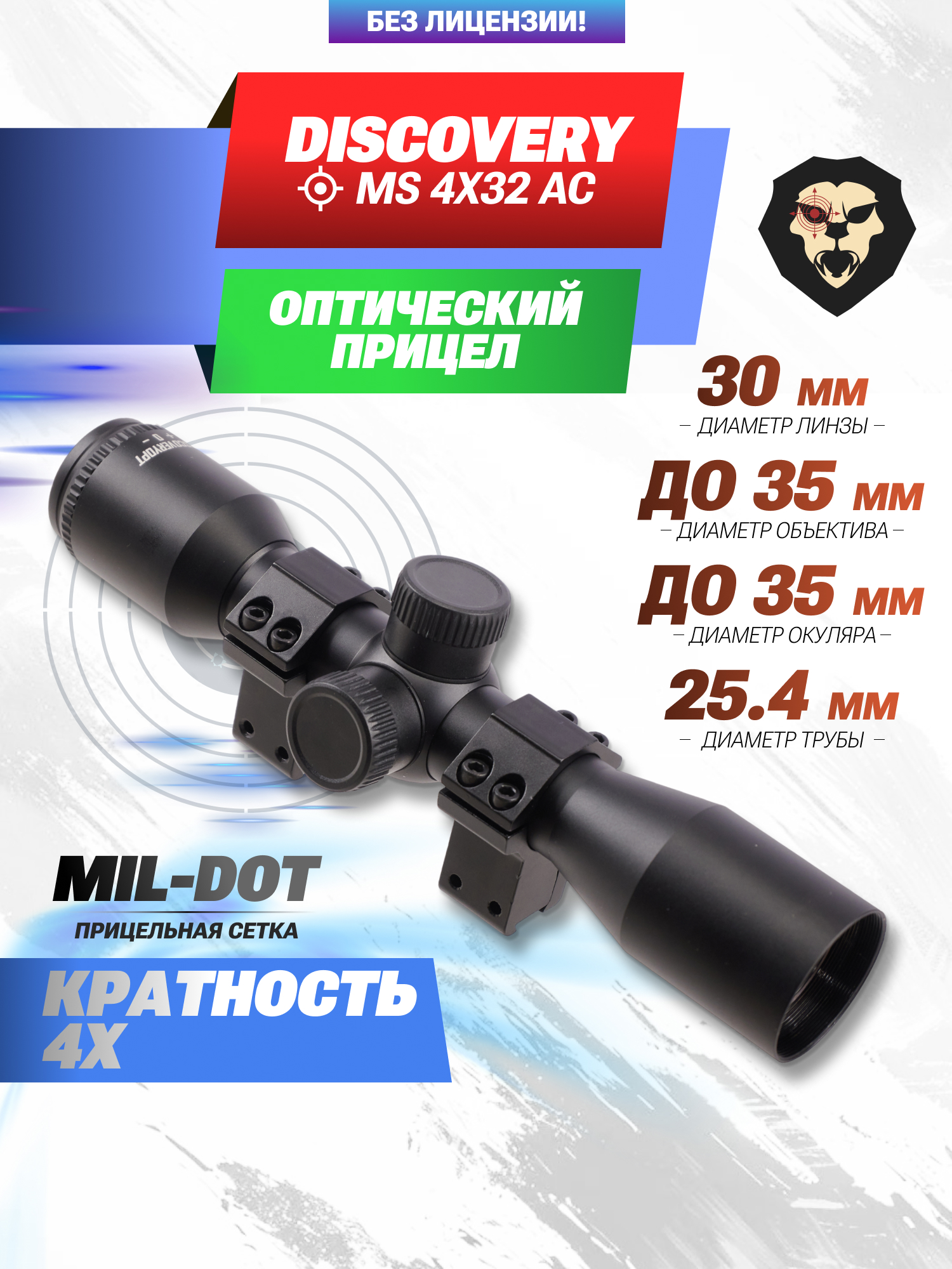 Оптический прицел Discovery MS 4x32 AC (25.4 мм, оригинал, Ласточкин хвост) купить в интернет-магазине Popadiv10.