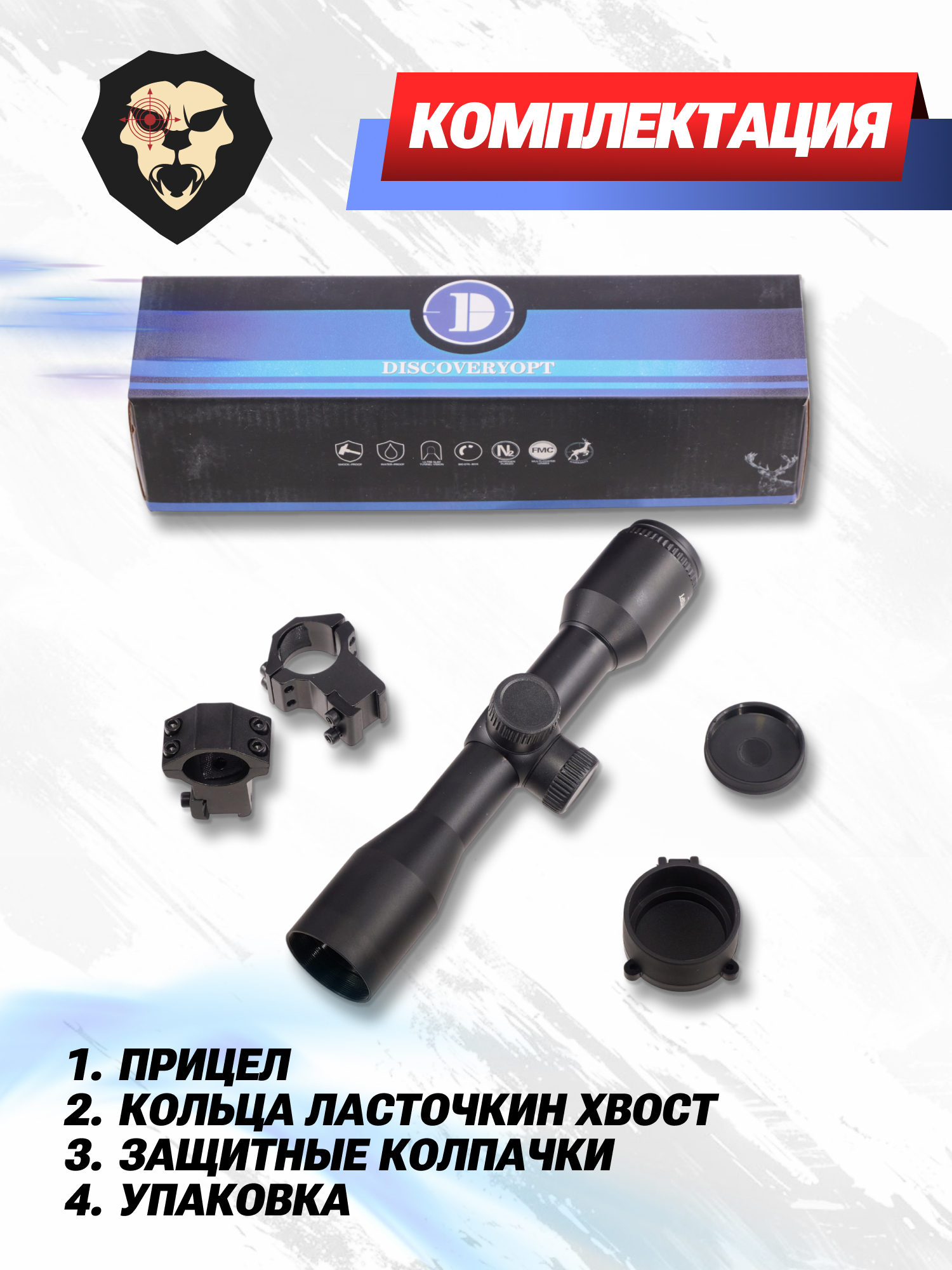 | Комплектация | Прицел, кольца Ласточкин хвост, ключ, салфетка, краткая документация, упаковка, документация |