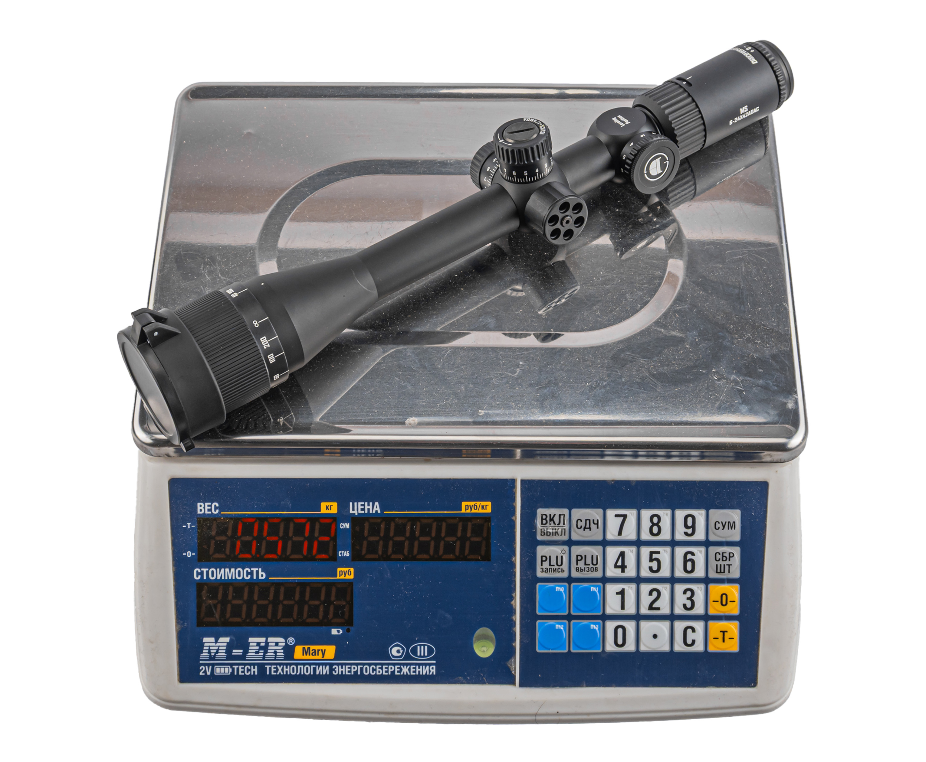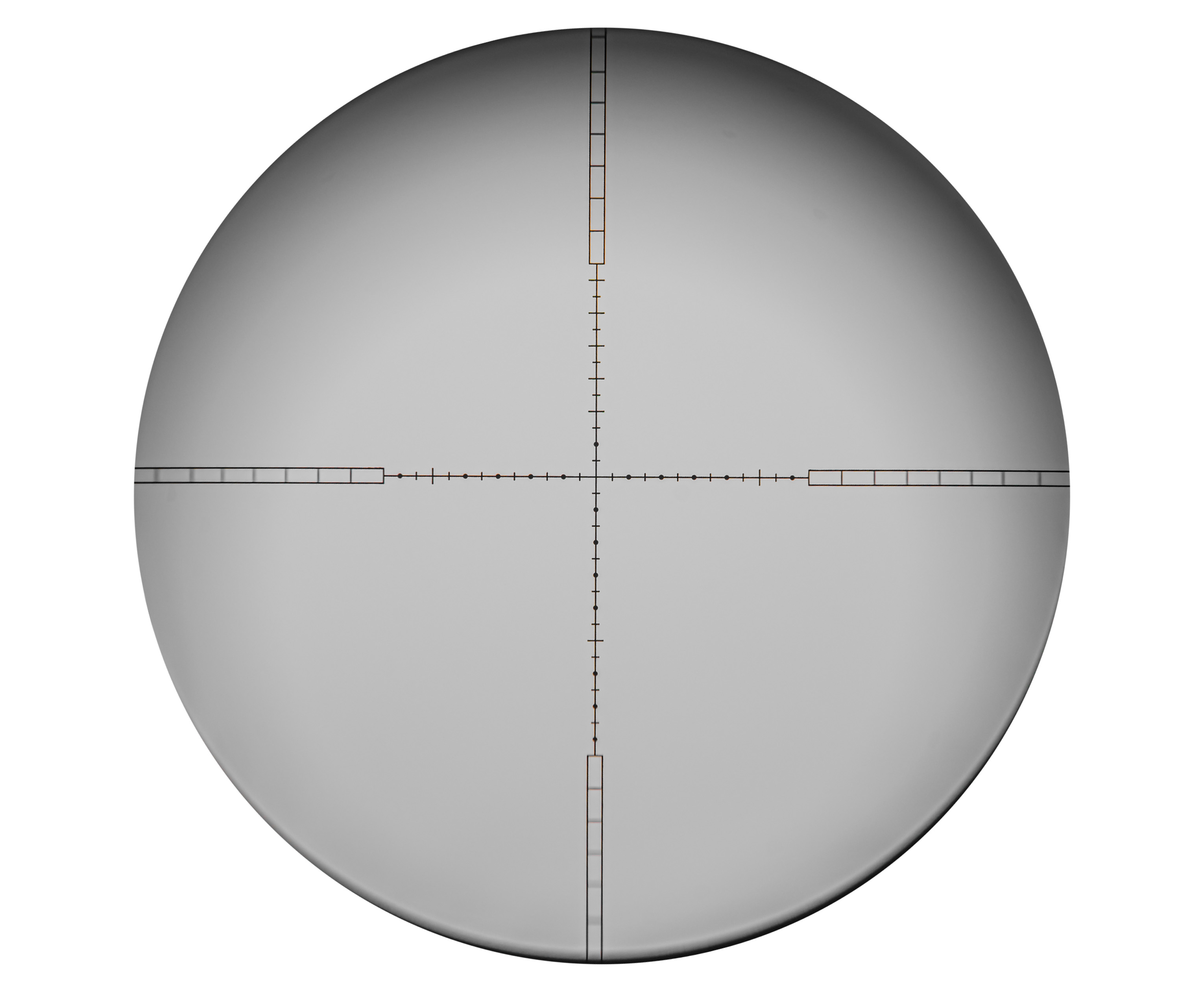 Для наведения присутствует подсвечиваемая сетка Half Mil-Dot с баллистическими пометками, которая находится во второй фокальной плоскости. Яркость выставляется боковым барабанчиком ближе к окулярной части. В свою очередь по центру присутствуют тактические турели для ввода вертикальных и горизонтальных поправок - шаг смещения перекрестия равен 0.25 MOA.