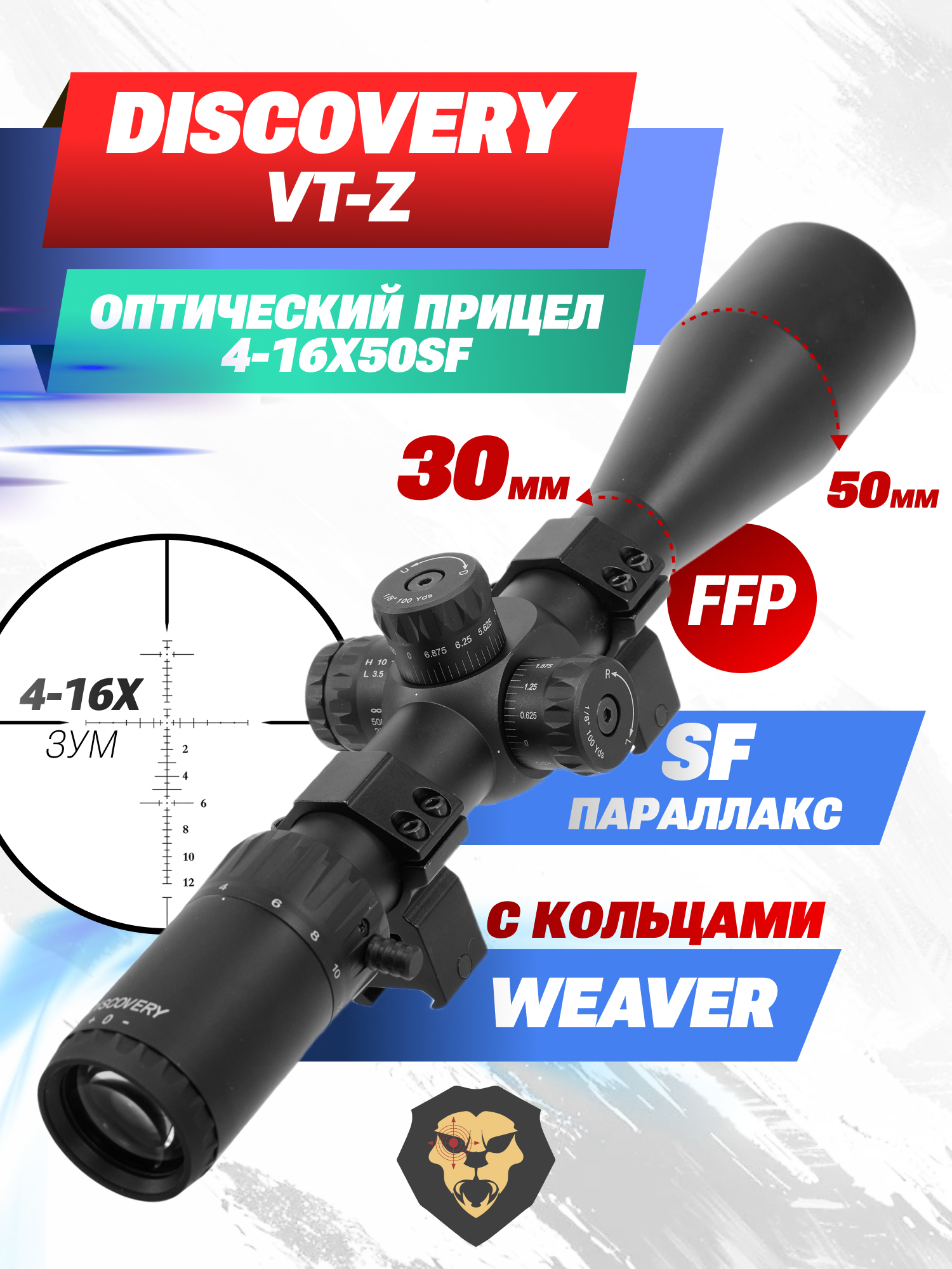 Оптический прицел Discovery VT-Z 4-16x50SF (30 мм, Weaver, оригинал) купить в интернет-магазине Popadiv10.