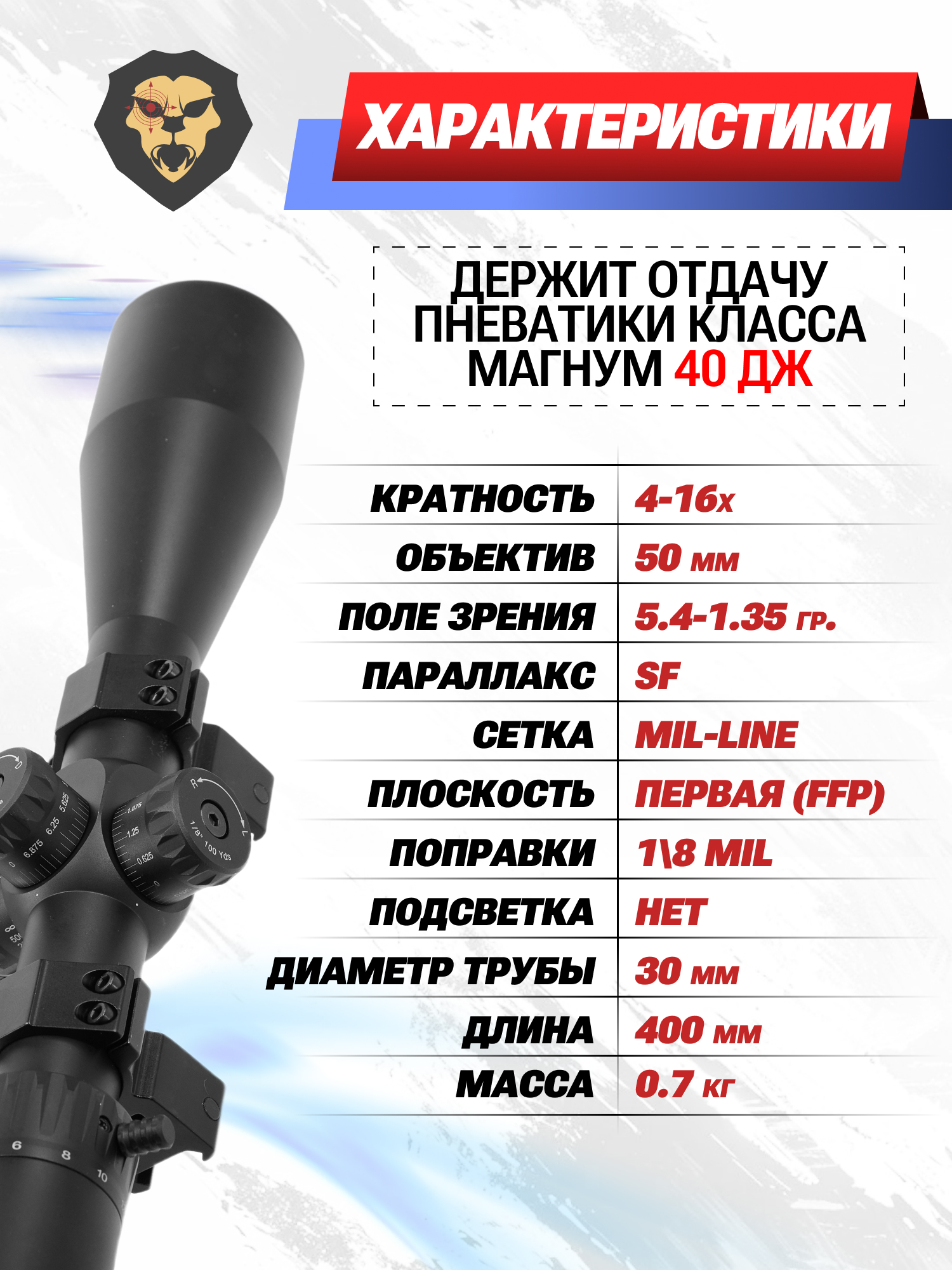 | Прицельная сетка | Баллистическая (Mil Line) |