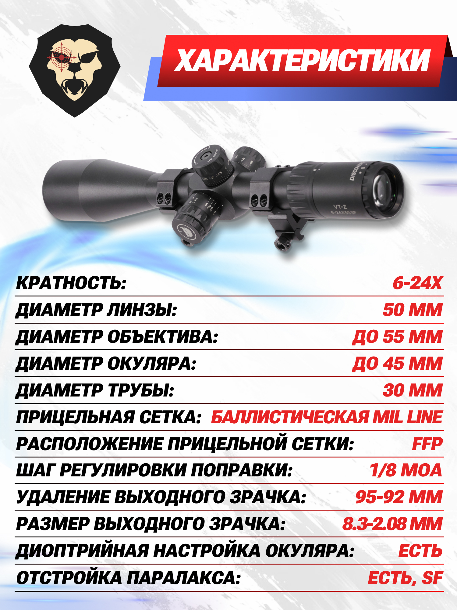 Информация о товаре "Оптический прицел Discovery VT-Z 6-24x50SF (30 мм, Weaver, оригинал)" носит ознакомительный характер, и не является публичной офертой, определяемой положениями Статьи 437 Гражданского кодекса Российской Федерации, характеристики, внешний вид, цвет и комплектация могут быть изменены производителем без уведомления.