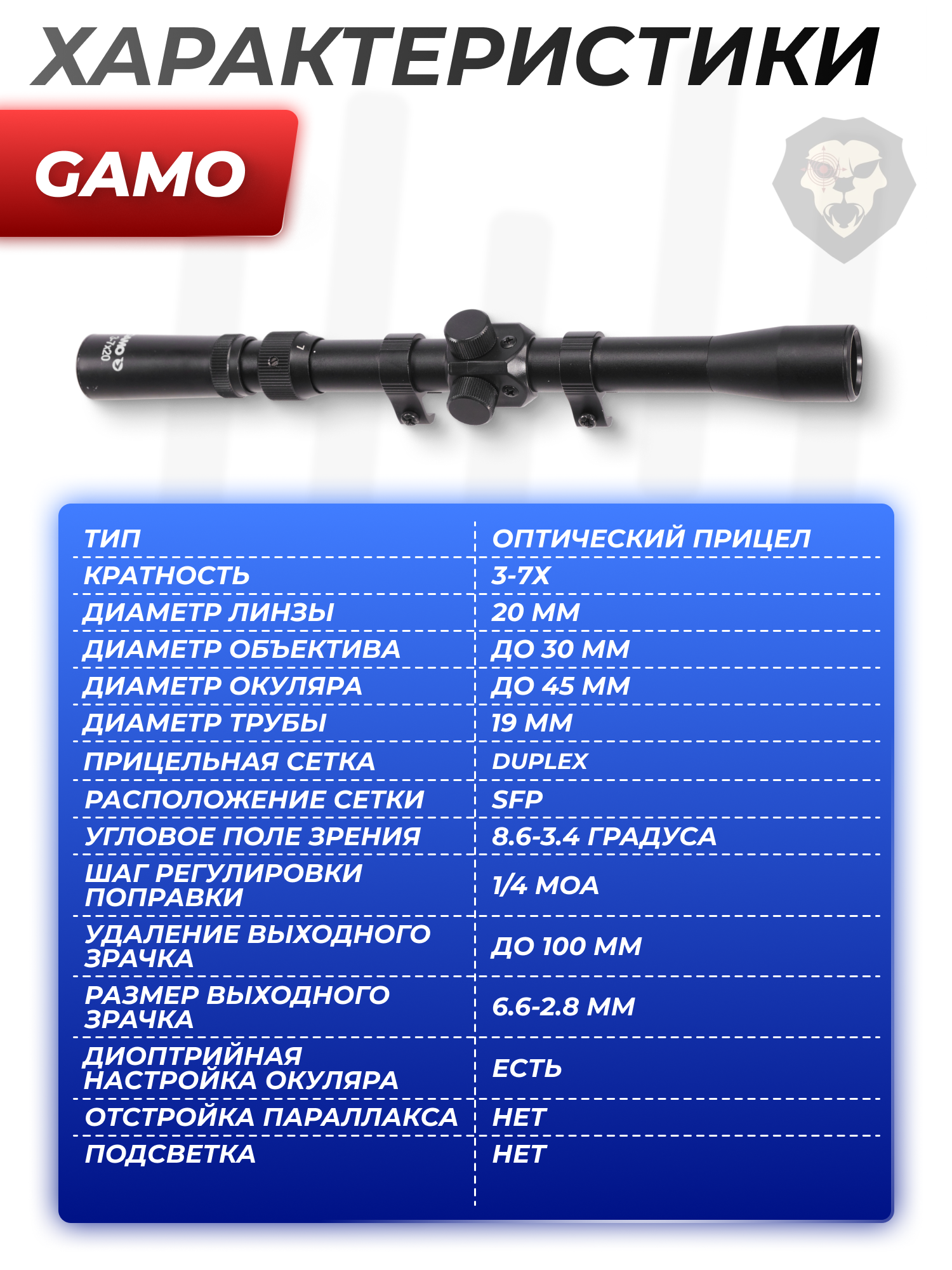 Оптический прицел Gamo 3-7x20 (19 мм, BH-GM370) купить в интернет-магазине Popadiv10.