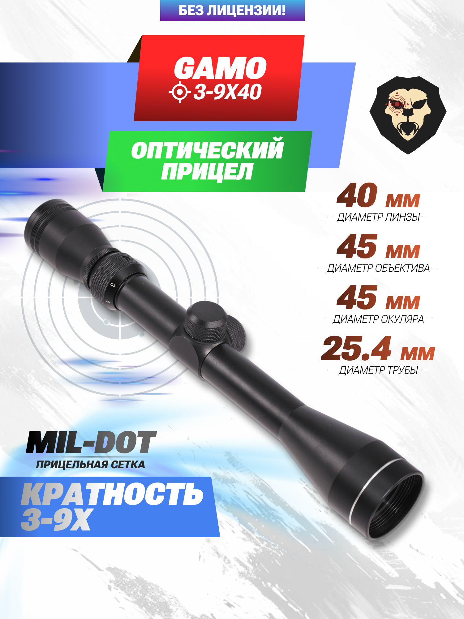 Информация о товаре "Оптический прицел Gamo 3-9x40 (BH-GM394, 25.4 мм)" носит ознакомительный характер, и не является публичной офертой, определяемой положениями Статьи 437 Гражданского кодекса Российской Федерации, характеристики, внешний вид, цвет и комплектация могут быть изменены производителем без уведомления.