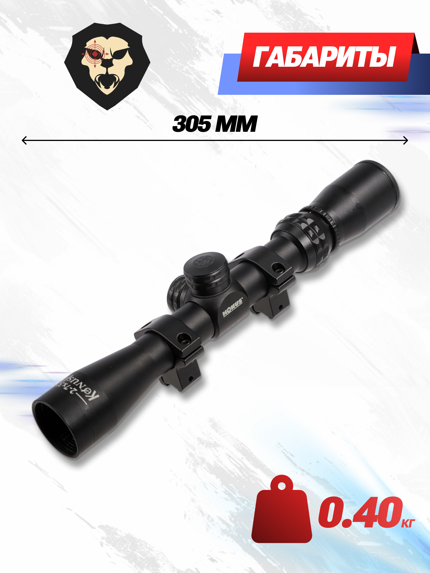 Оптический прицел KonusPro – представитель классических приборов в форме трубки длиной 305 миллиметров. Модель характеризуется простотой в эксплуатации, а монтаж на оружие выполняется посредством стандартных колец с посадочным диаметром 25.4 мм. Оптика позиционируется изготовителем как эффективное и недорогое решение, предназначенное для мелкокалиберных огнестрельных винтовок, а так же пружинно-поршневой пневматики с энергией выстрела до 7.5 Дж.