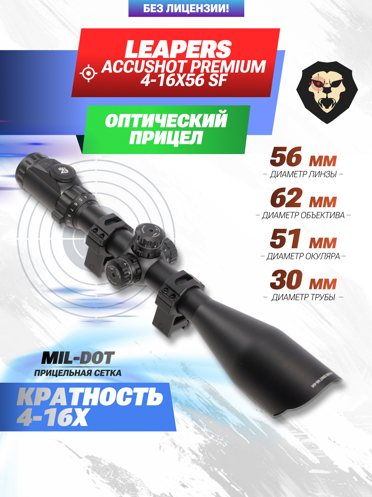 Оптический прицел Leapers Accushot Premium 4-16x56 SF (оригинал, 30 мм, Mil-Dot, подсветка, Weaver) купить в интернет-магазине Popadiv10.