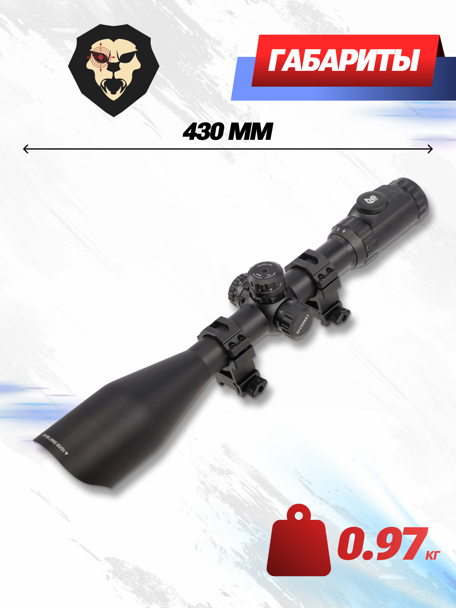 Обозреваемый снайперский прицел имеет переменную кратность увеличения изображения в диапазоне 4-16x, ввиду чего допускается отработка целей на средних и дальних расстояниях. Для регулировки степени приближения предусмотрено вращающее кольцо за окуляром с соответствующими маркировками. Важно заметить, что озвученный механизм включает в себя рельефную поверхность для исключения скольжения при использовании перчаток.