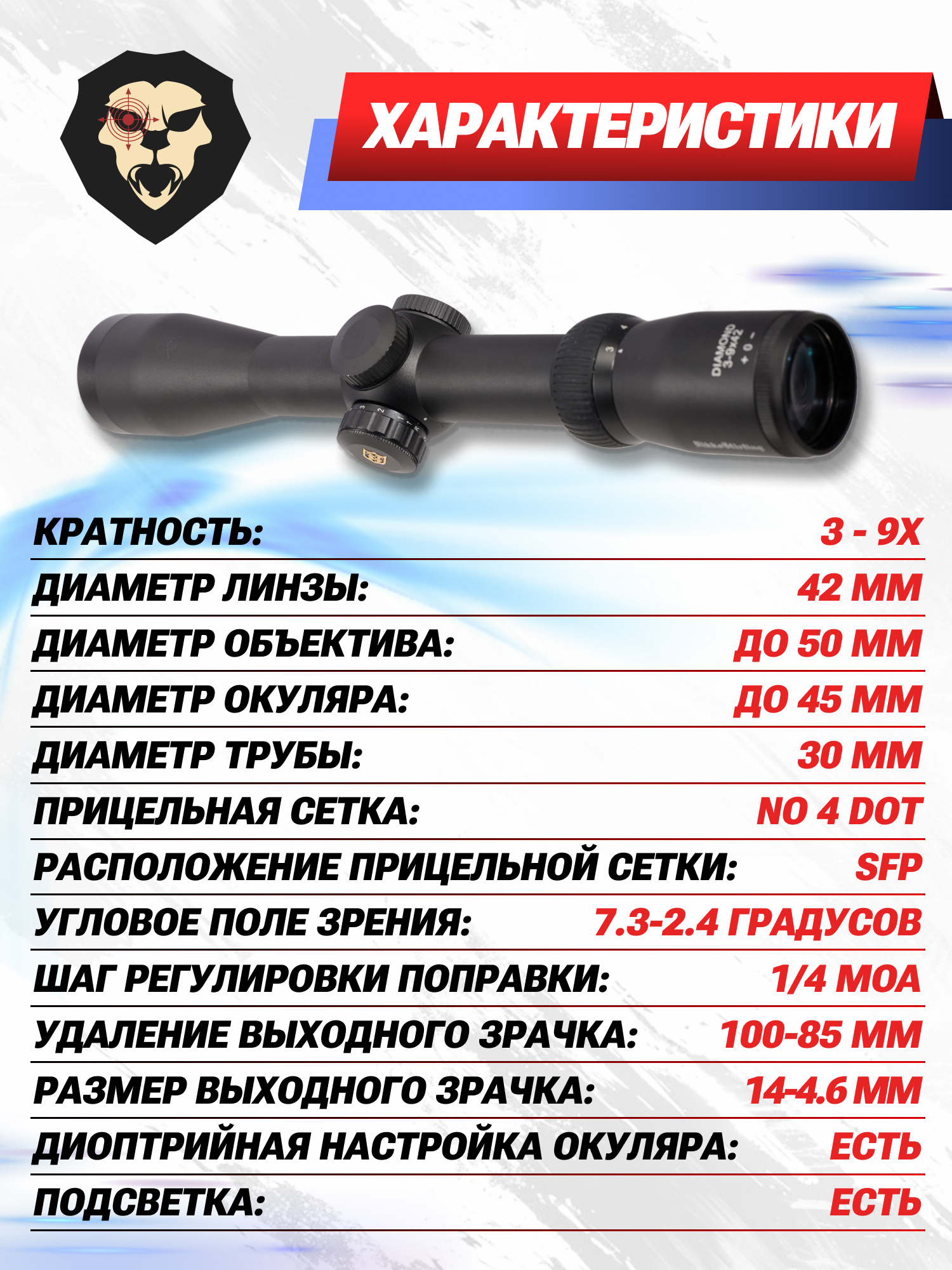 Информация о товаре "Оптический прицел Nikko Stirling Diamond 3-9x42 (No 4 Dot, 30 мм, с подсветкой)" носит ознакомительный характер, и не является публичной офертой, определяемой положениями Статьи 437 Гражданского кодекса Российской Федерации, характеристики, внешний вид, цвет и комплектация могут быть изменены производителем без уведомления.