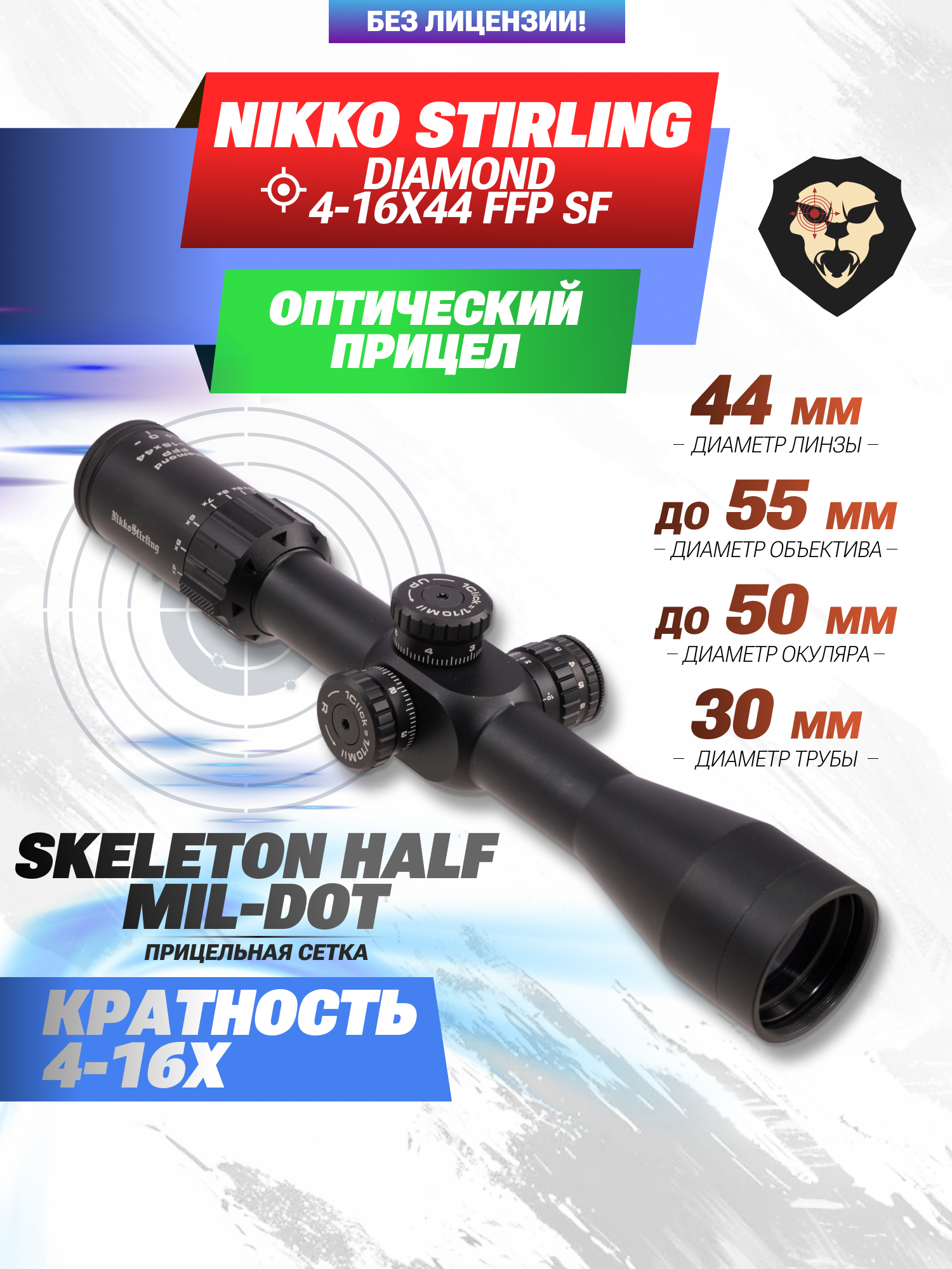 Информация о товаре "Оптический прицел Nikko Stirling Diamond 4-16x44 FFP SF (30 мм, Skeleton HMD, подсветка)" носит ознакомительный характер, и не является публичной офертой, определяемой положениями Статьи 437 Гражданского кодекса Российской Федерации, характеристики, внешний вид, цвет и комплектация могут быть изменены производителем без уведомления.