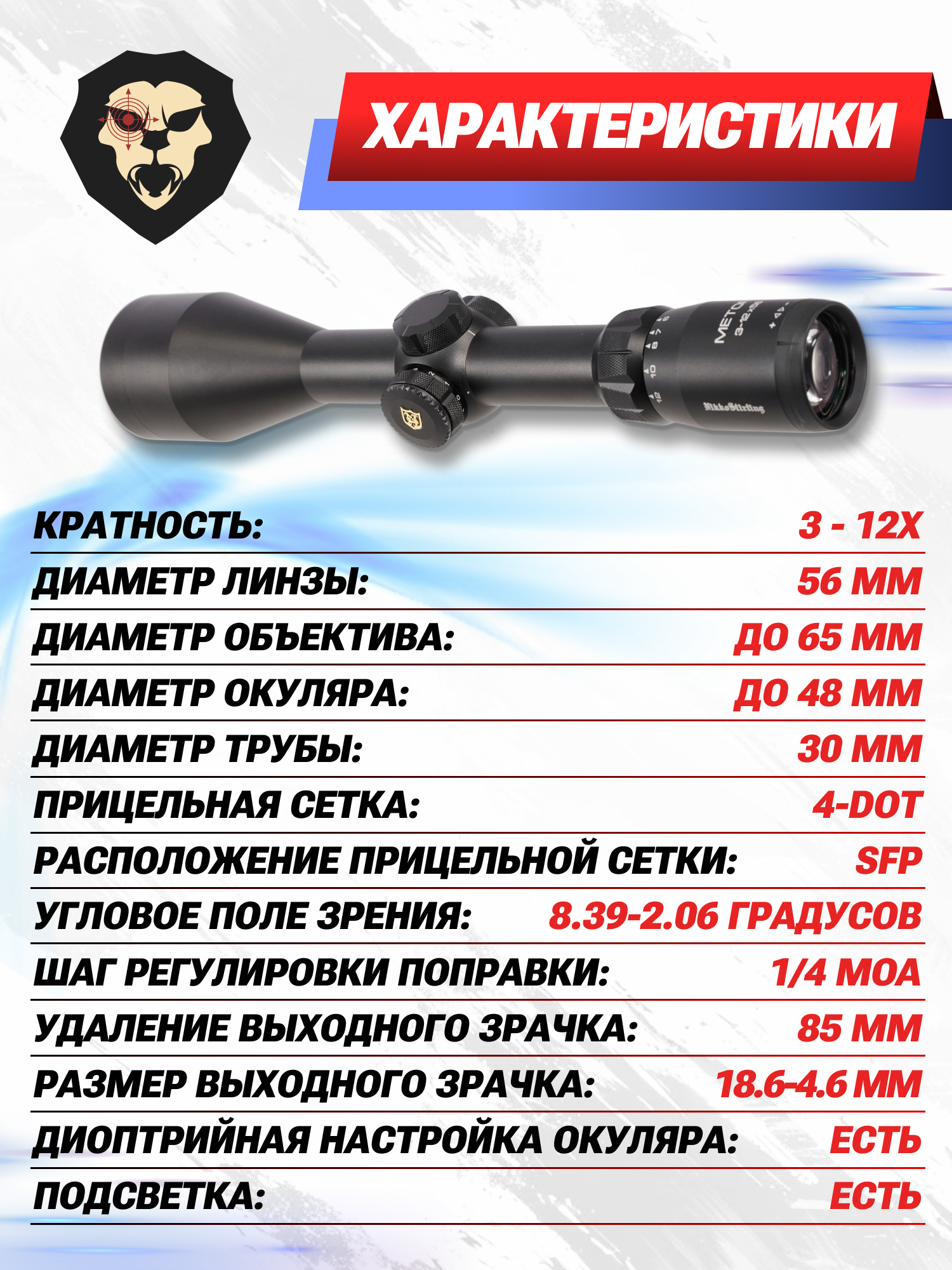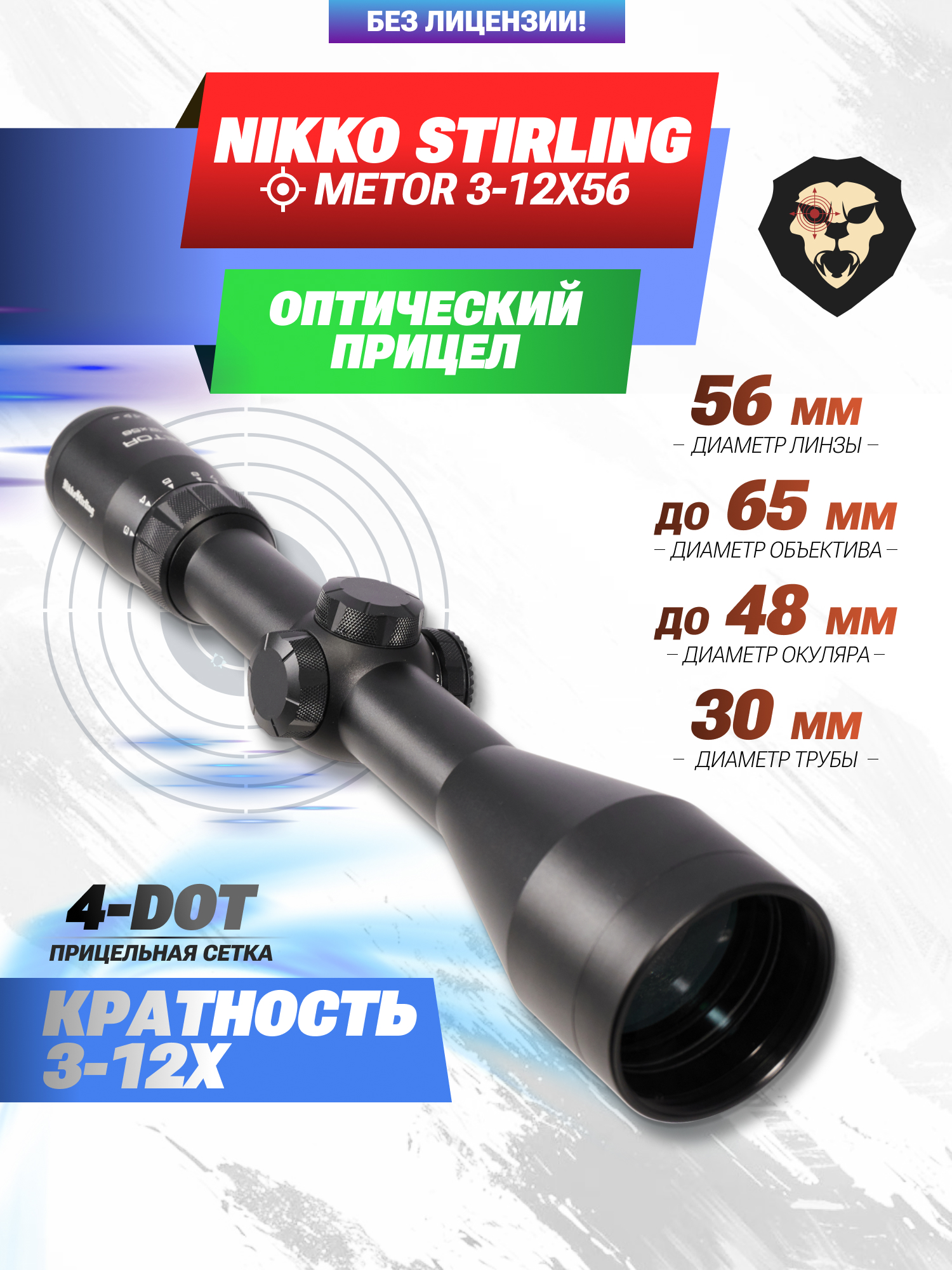 Оптический прицел Nikko Stirling Metor 3-12x56 (30 мм, подсветка, 4 Dot) купить в интернет-магазине Popadiv10.