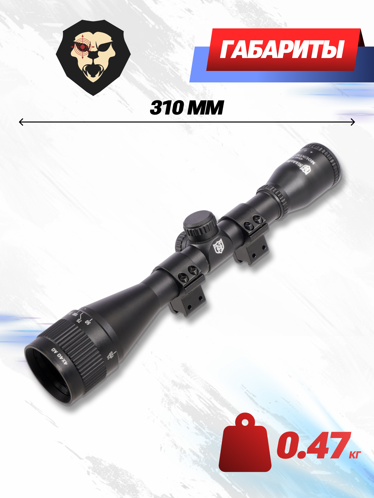 По заявлению изготовителя экземпляр можно без опаски монтировать на PCP пневматику и огнестрельные нарезные охотничьи карабины. Повышенная виброустойчивость также позволяет устанавливать прицел на пружинно-поршневые винтовки с дульной энергией до 7.5 Дж. Чтобы закрепить оборудование на направляющей планке оружия, потребуются фиксирующие приспособления с диаметром посадки один дюйм - в набор входят кольца под пазы типа Ласточкин хвост 11 мм.