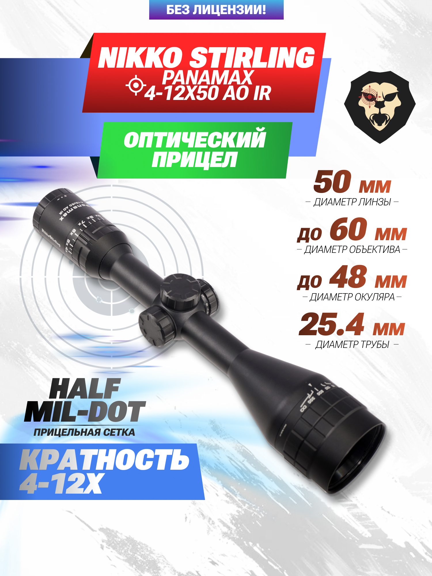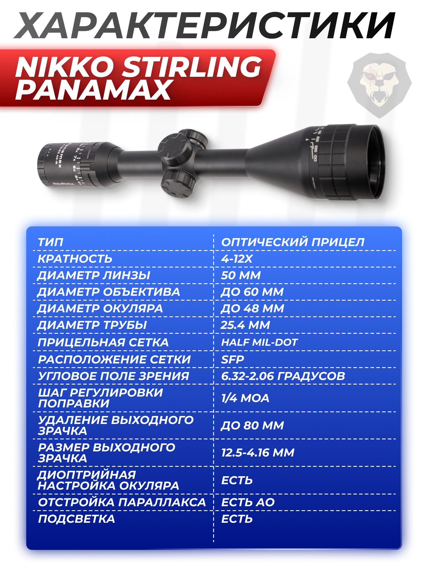 Оптический прицел Nikko Stirling Panamax 4-12x50 AO IR (25.4 мм, подсветка, Half MD) купить в интернет-магазине Popadiv10.