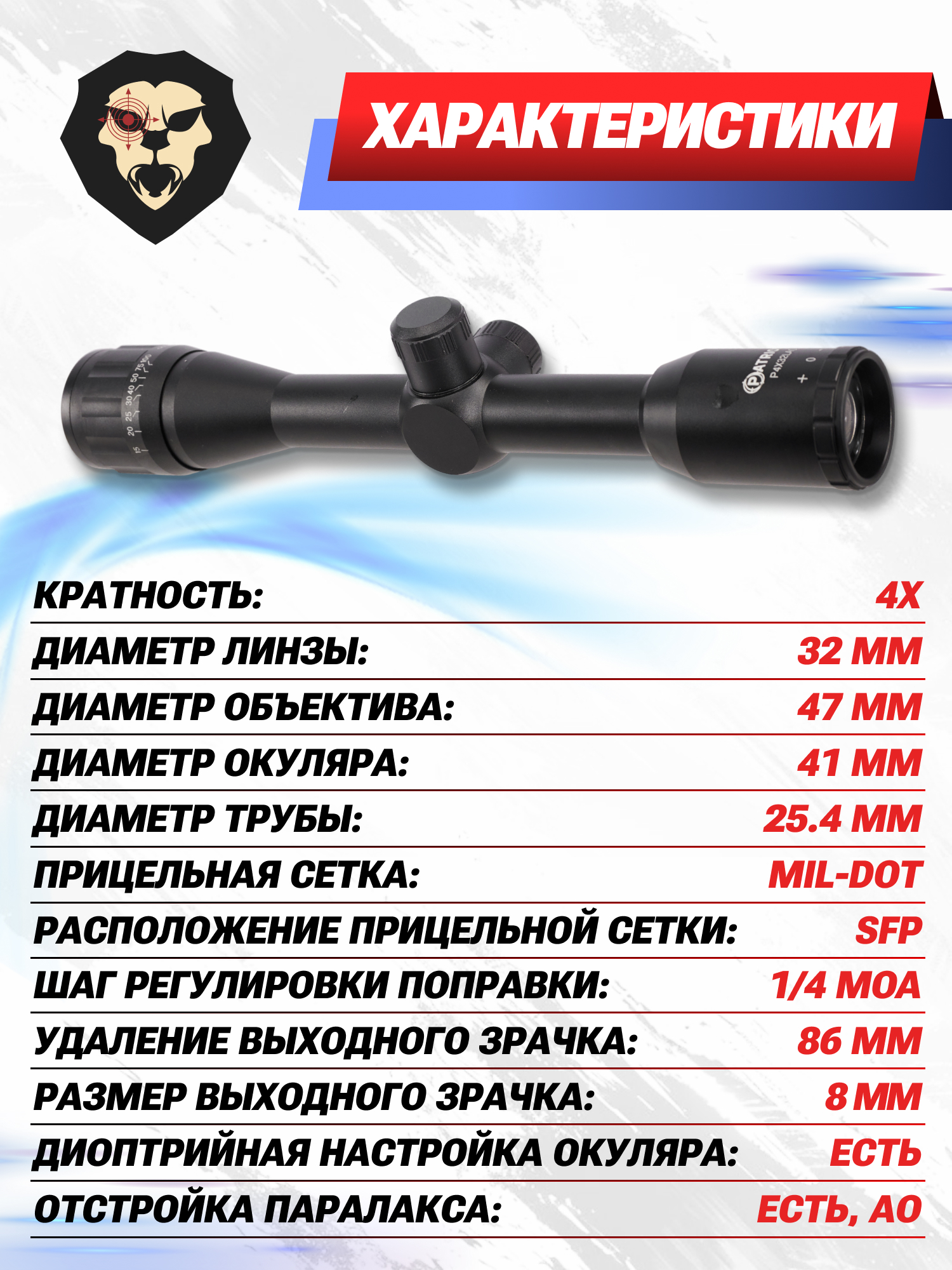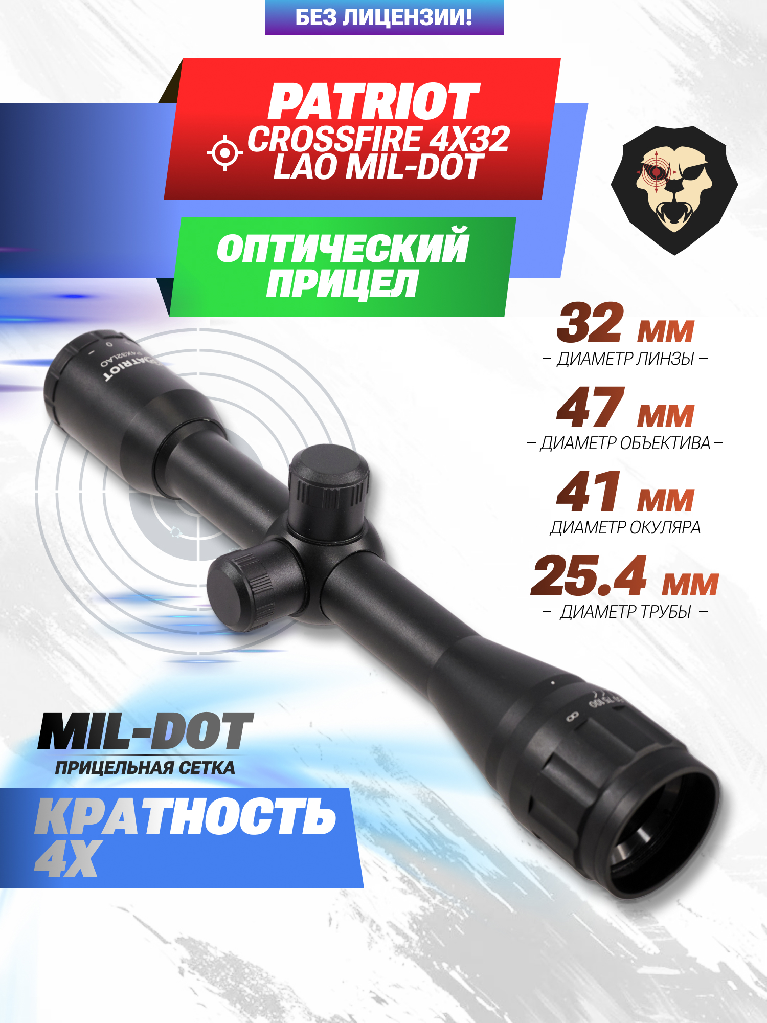Оптический прицел Patriot Crossfire 4х32 LAO Mil-Dot (BH-PT43AO, 25.4 мм) купить в интернет-магазине Popadiv10.