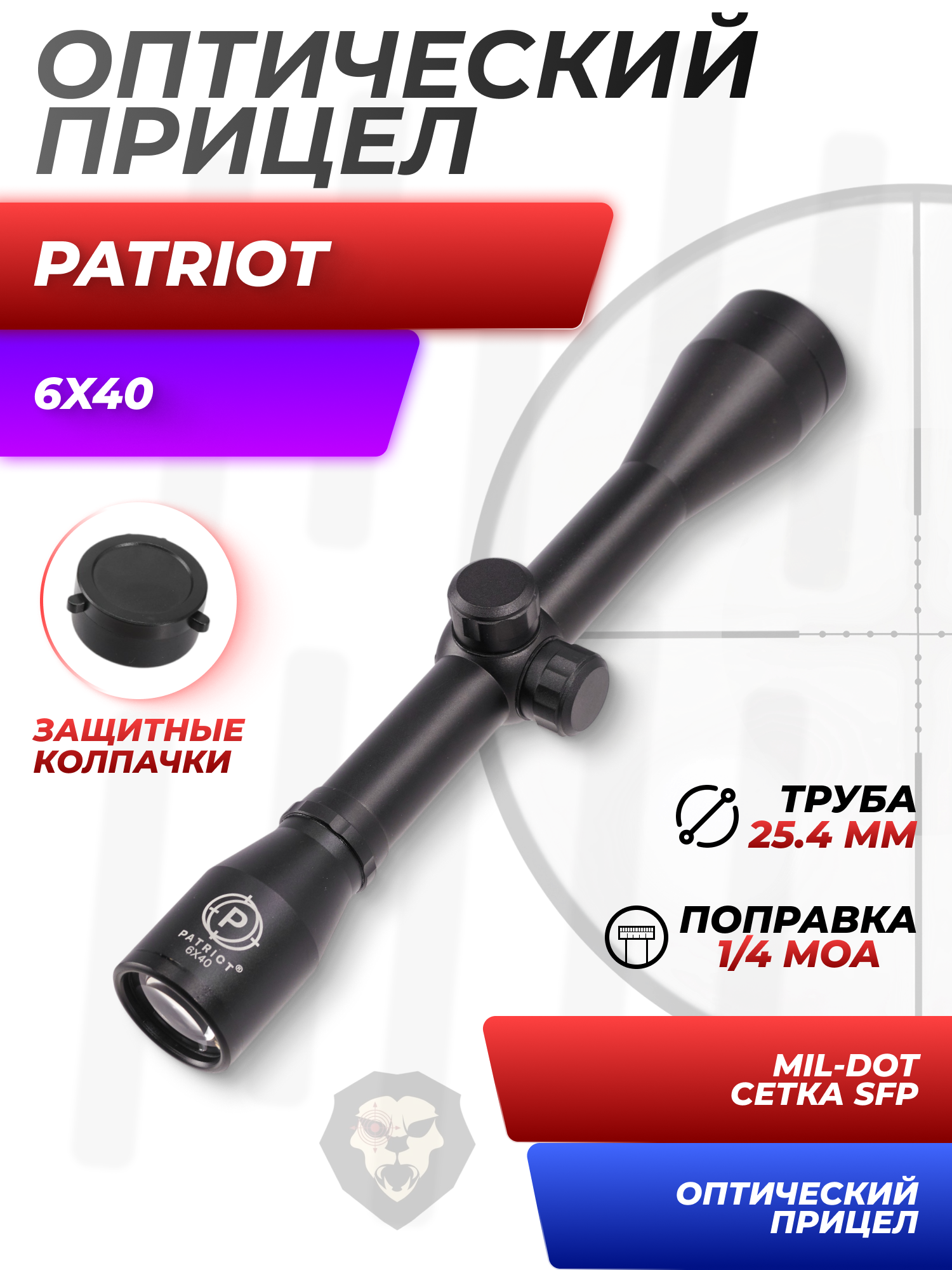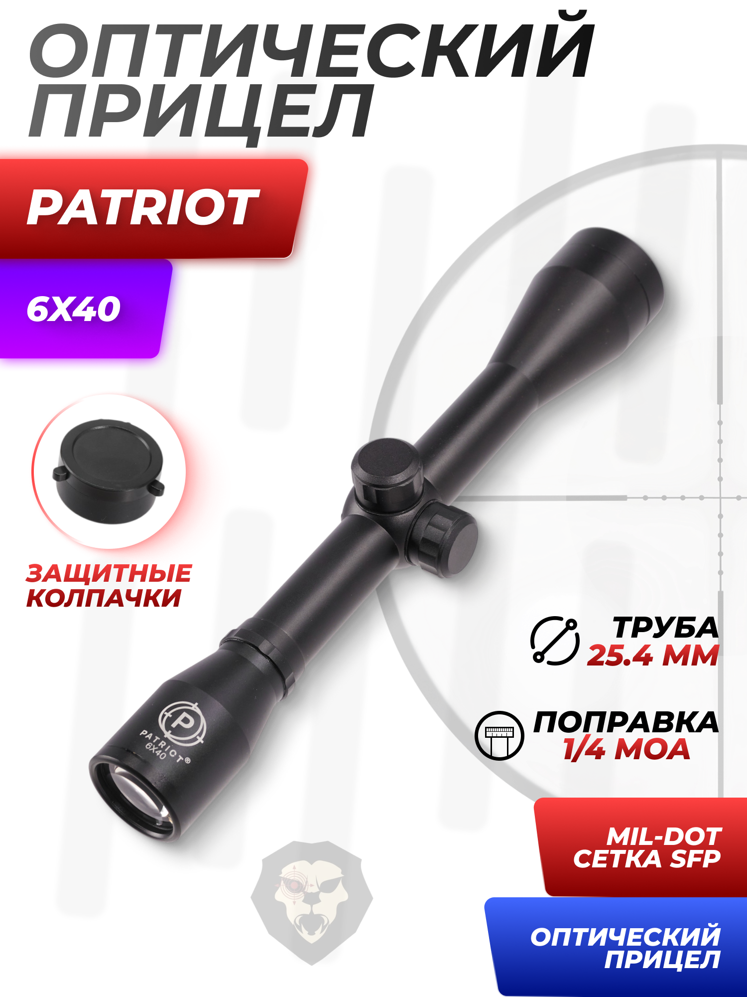 Оптический прицел Patriot 6x40 Mil-Dot (BH-PT64, 25.4 мм) купить в интернет-магазине Popadiv10.