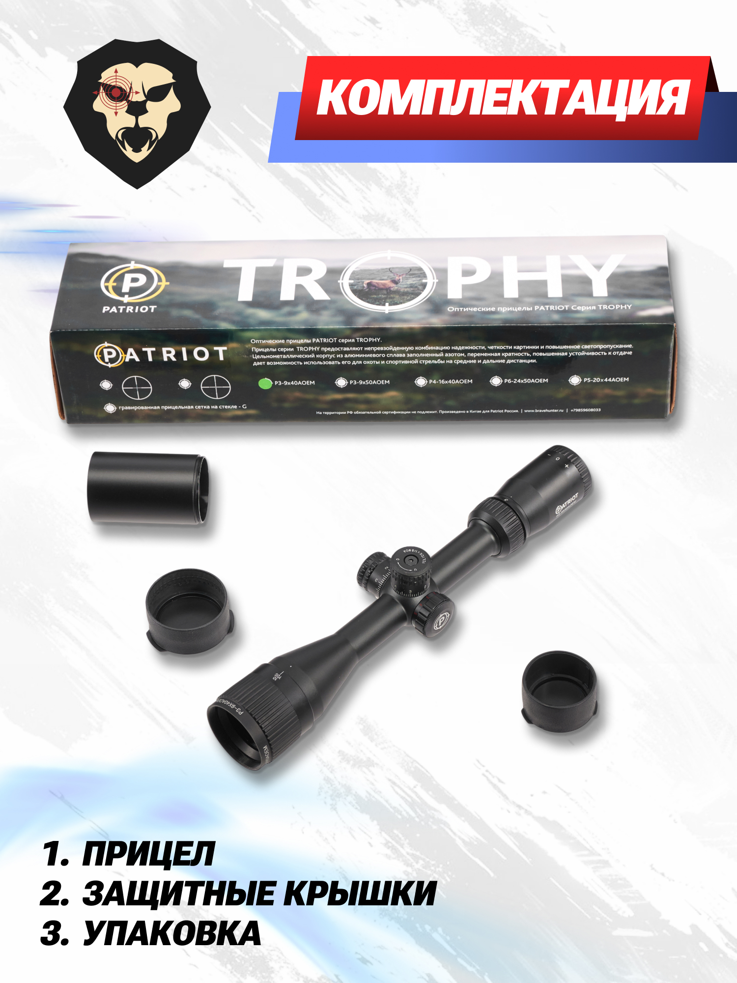Информация о товаре "Оптический прицел Patriot Trophy P3-9x40 AOEM Mil-Dot (BH-PT394EM, 25.4 мм)" носит ознакомительный характер, и не является публичной офертой, определяемой положениями Статьи 437 Гражданского кодекса Российской Федерации, характеристики, внешний вид, цвет и комплектация могут быть изменены производителем без уведомления.