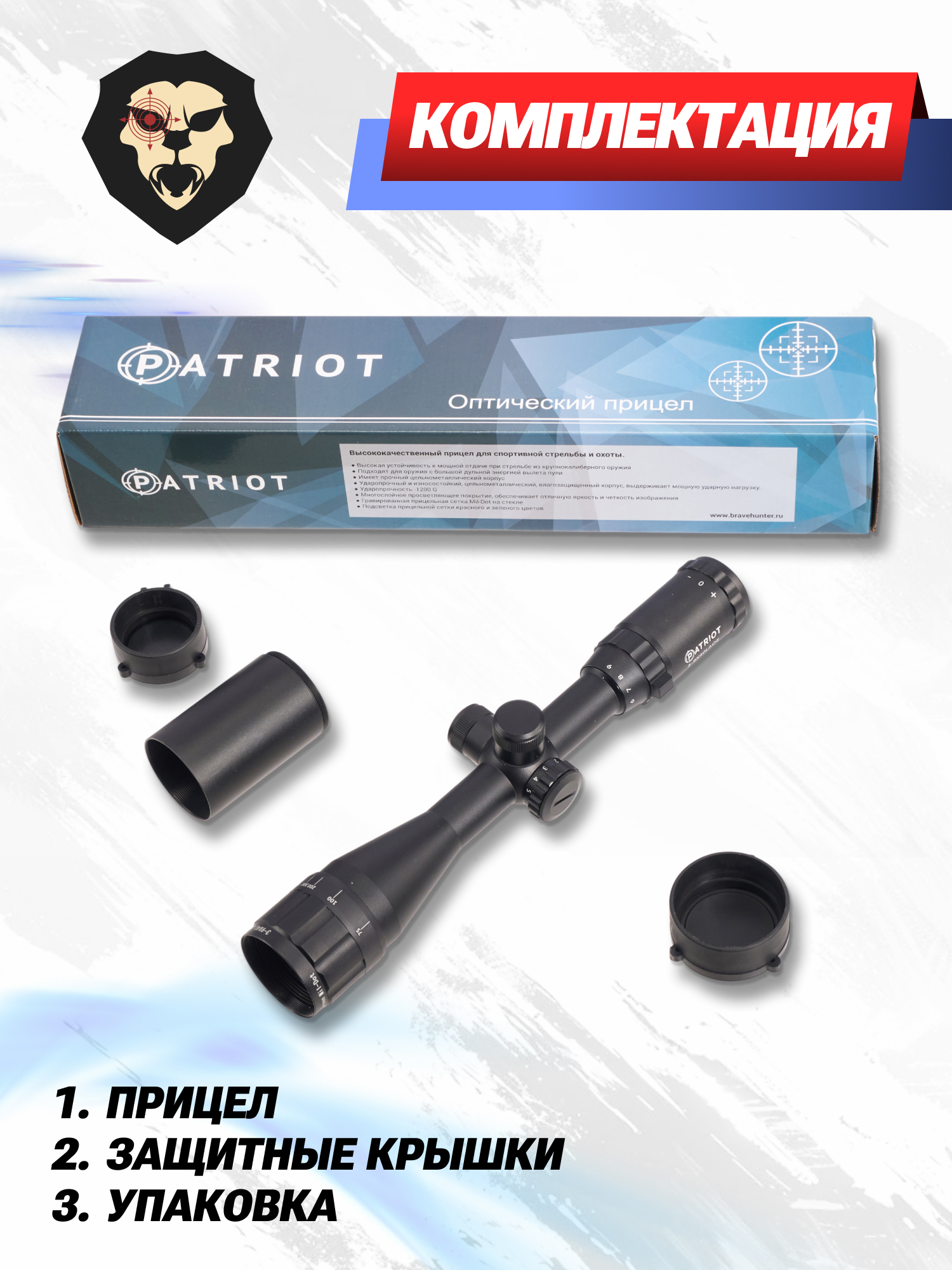 | Комплектация | Прицел, защитные крышки линз, фибра для протирки, документация, упаковка |