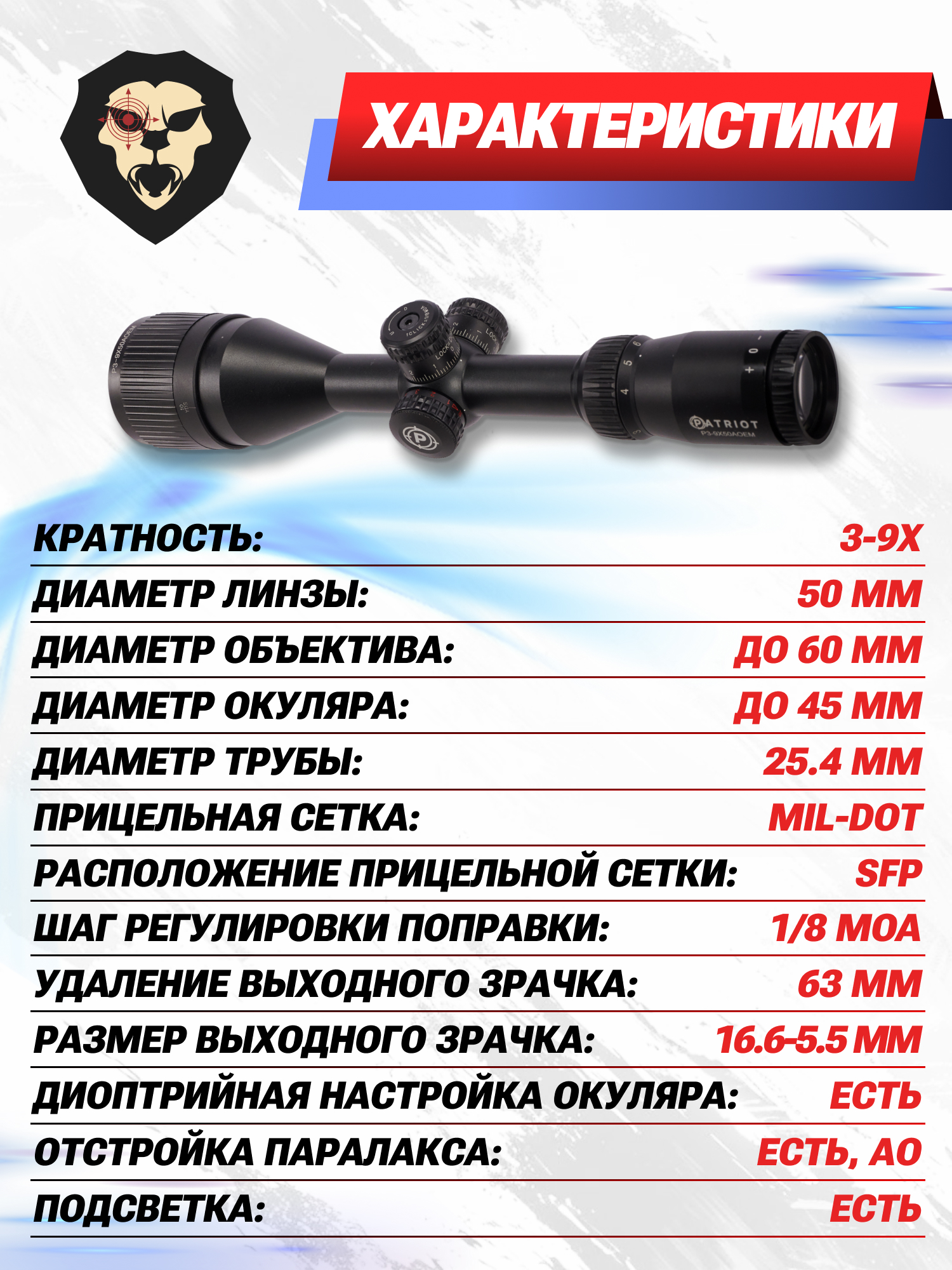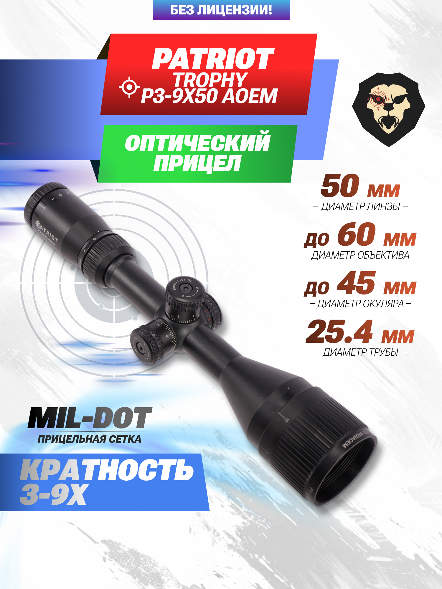 Оптический прицел Patriot Trophy P3-9x50 AOEM (BH-PT395EM, 25.4 мм) купить в интернет-магазине Popadiv10.