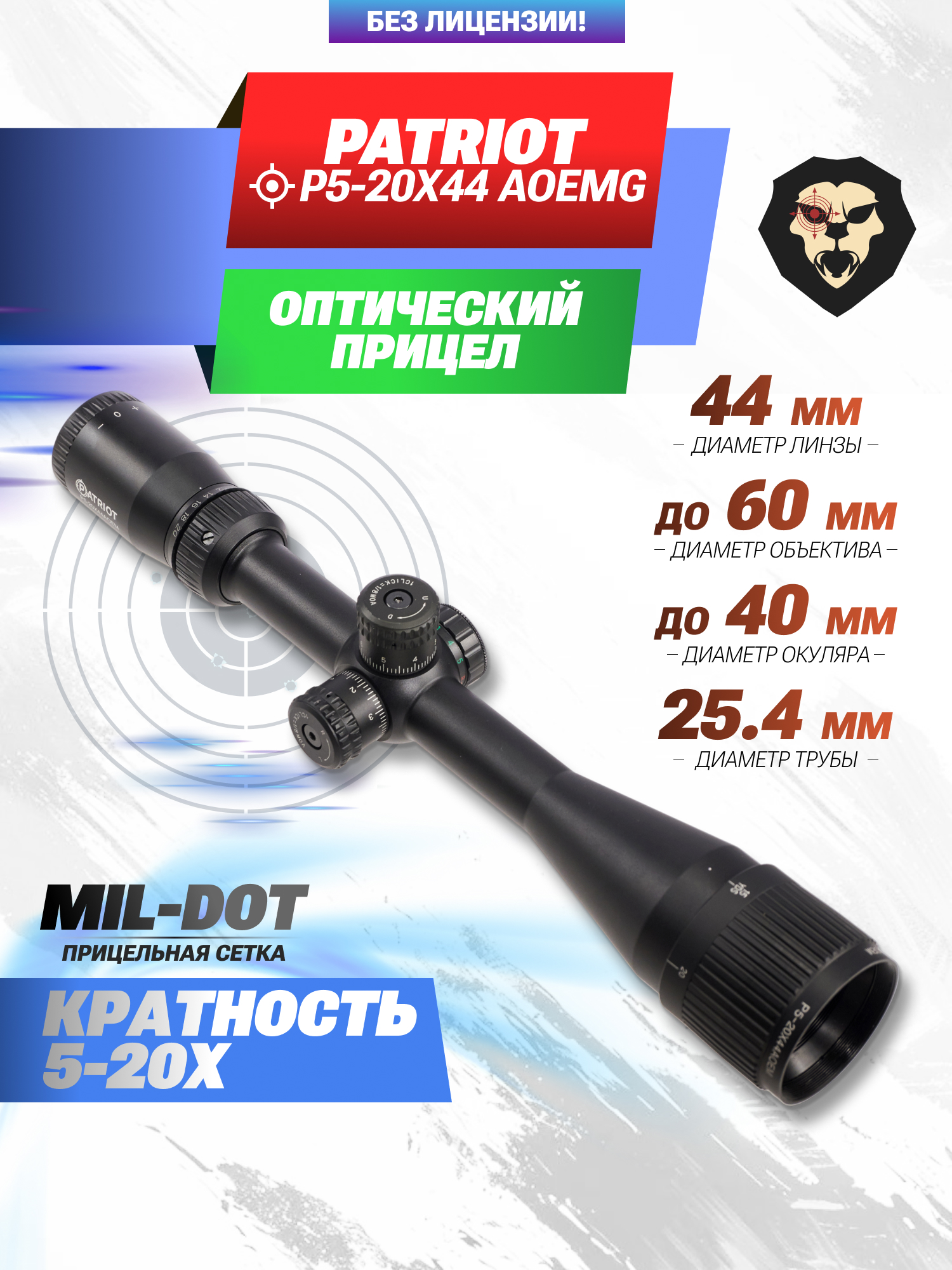 Оптический прицел Patriot P5-20x44 AOEMG (Trophy, Mil-Dot, 25.4 мм, BH-PT520EMG) купить в интернет-магазине Popadiv10.