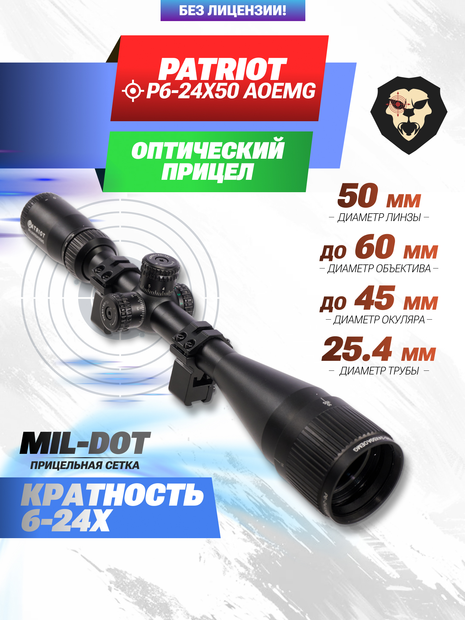 Оптический прицел Patriot P6-24x50 AOEMG (Trophy, Mil-Dot, BH-PT624EMG) купить в интернет-магазине Popadiv10.