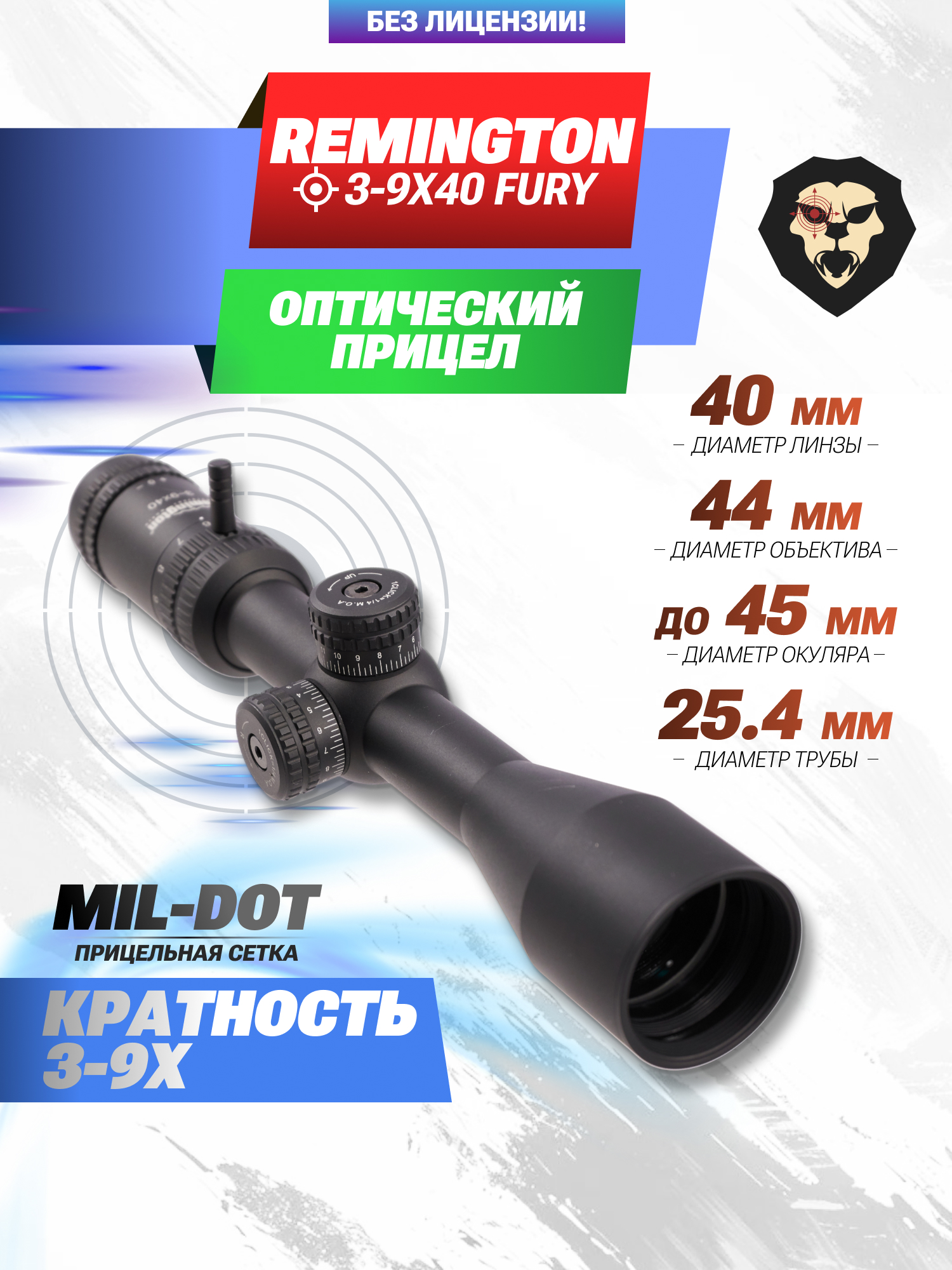 Оптический прицел Remington 3-9x40 Fury (25 mm, Mil-Dot, оригинал) купить в интернет-магазине Popadiv10.